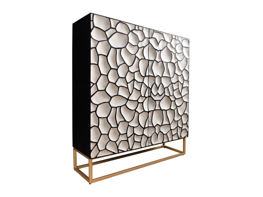 Highboard VULCANO 120cm 3D mozaika mangové dřevo černá bílá