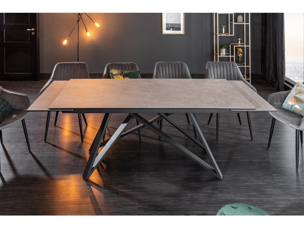 Jídelní stůl ATLAS 180-220-260cm cementový vzhled keramický s tvrzeným sklem