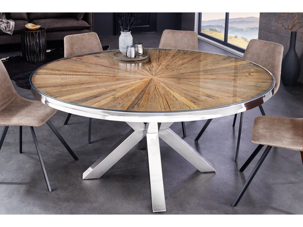 Jídelní stůl BARRACUDA 140cm kulaté teakové dřevo se skleněnou deskou