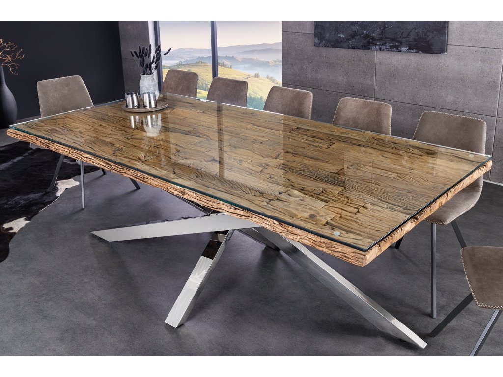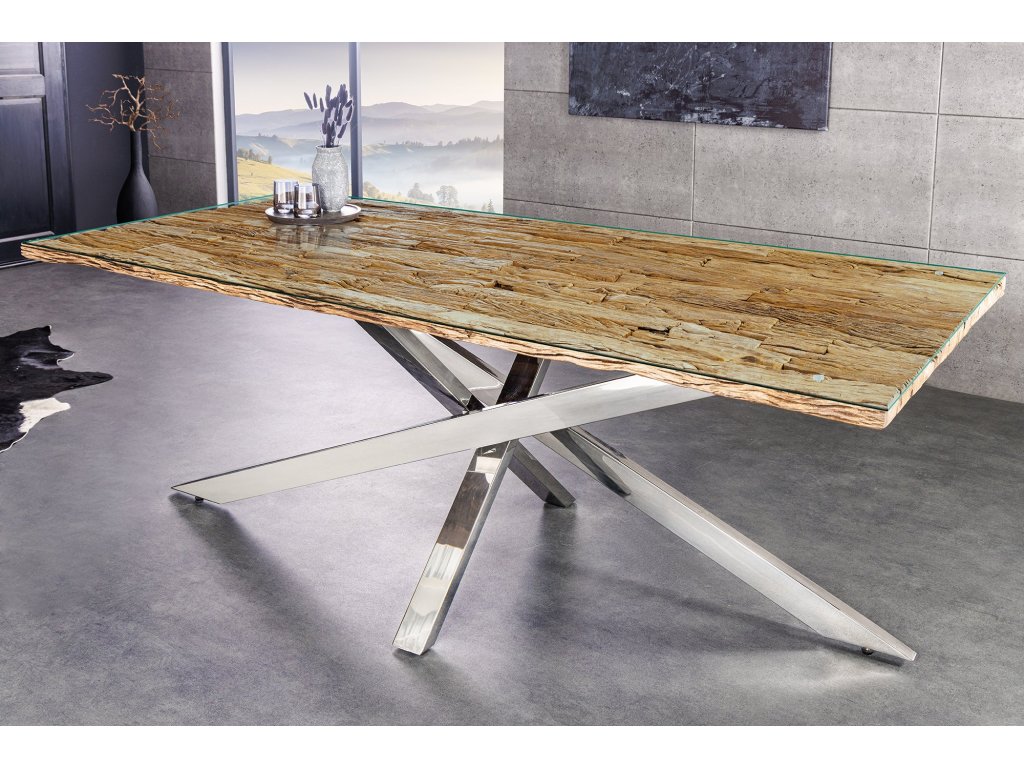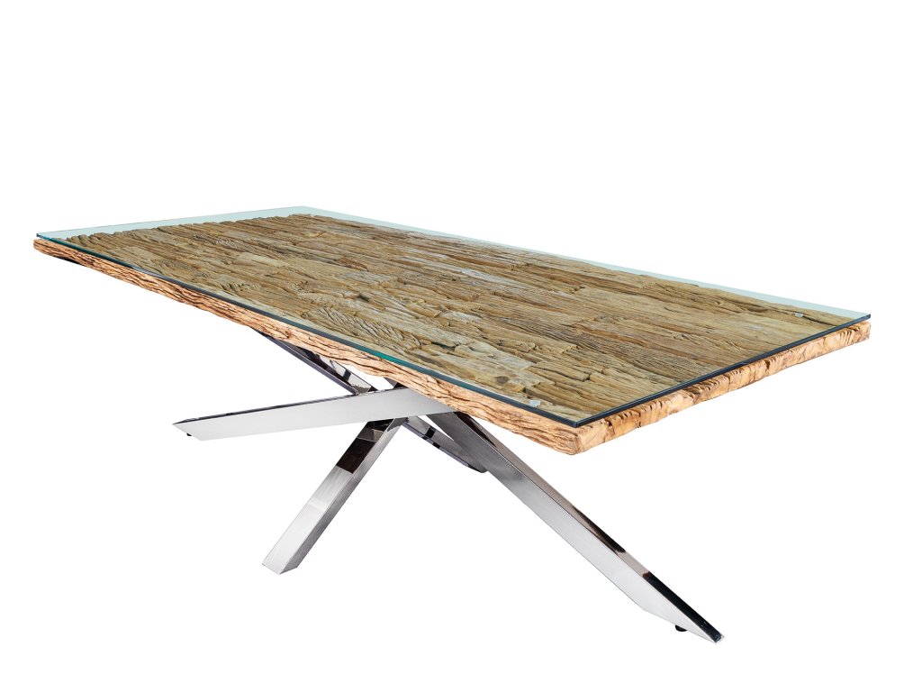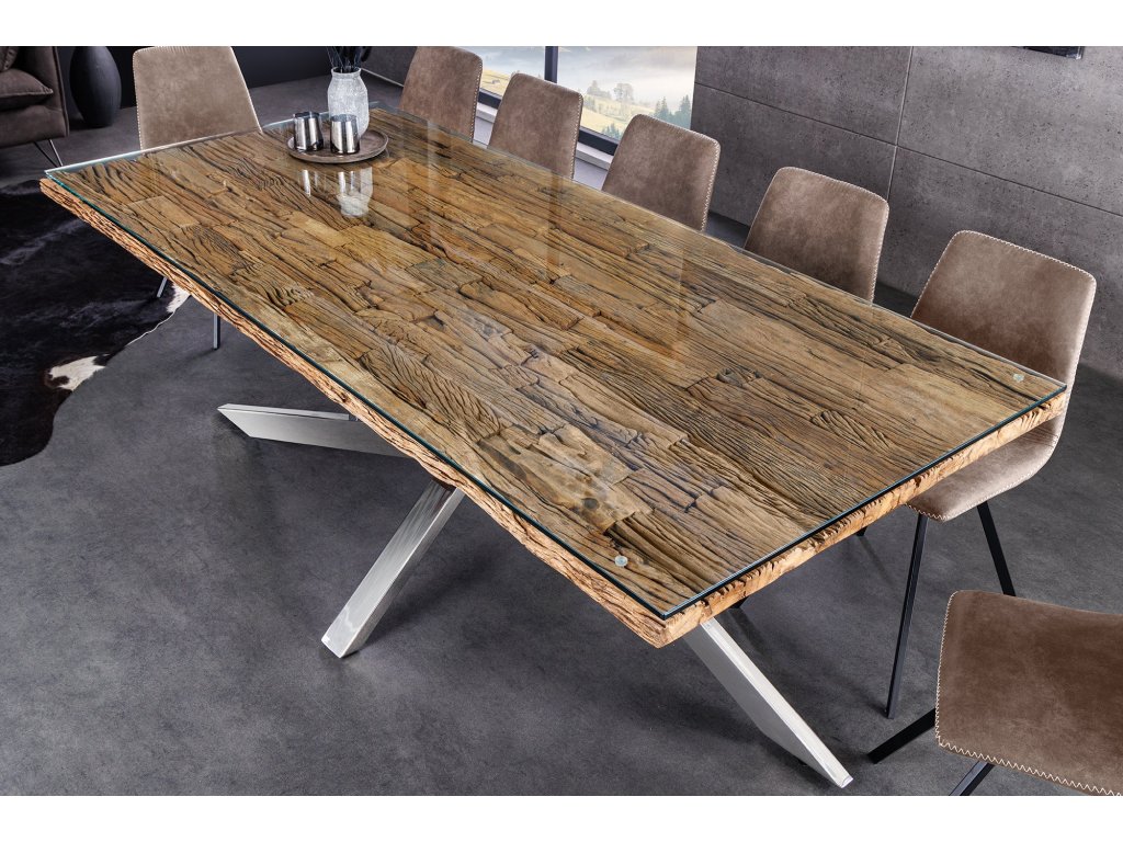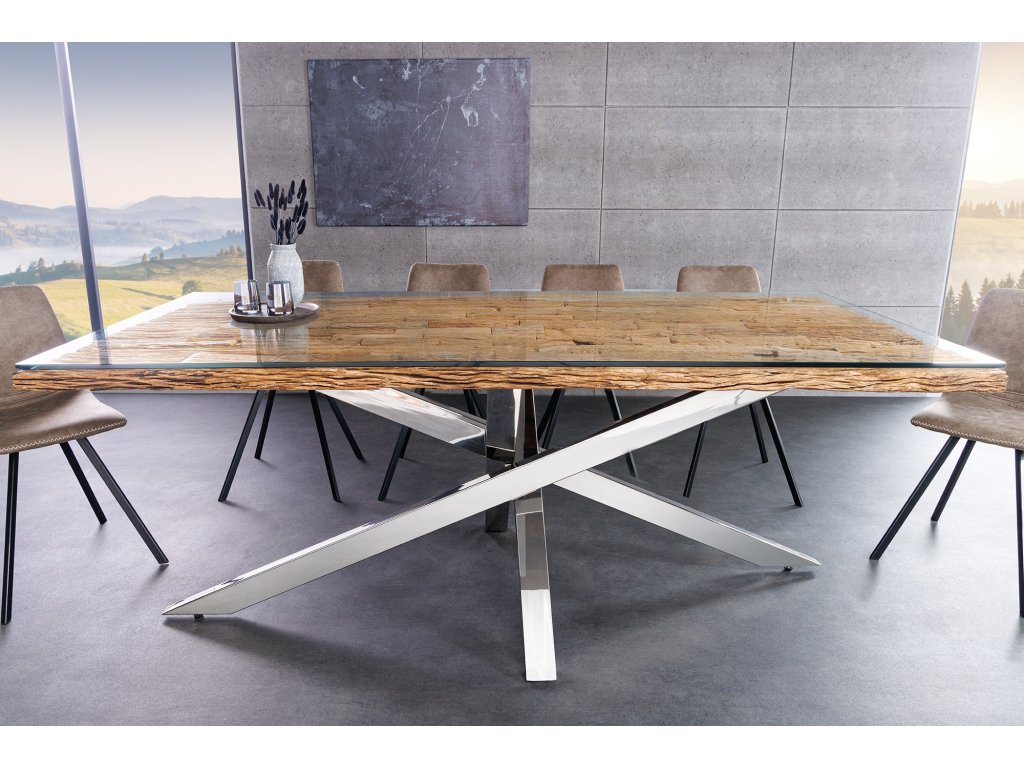 Jídelní stůl BARRACUDA 220cm 40mm teakové dřevo s deskou z tvrzeného skla