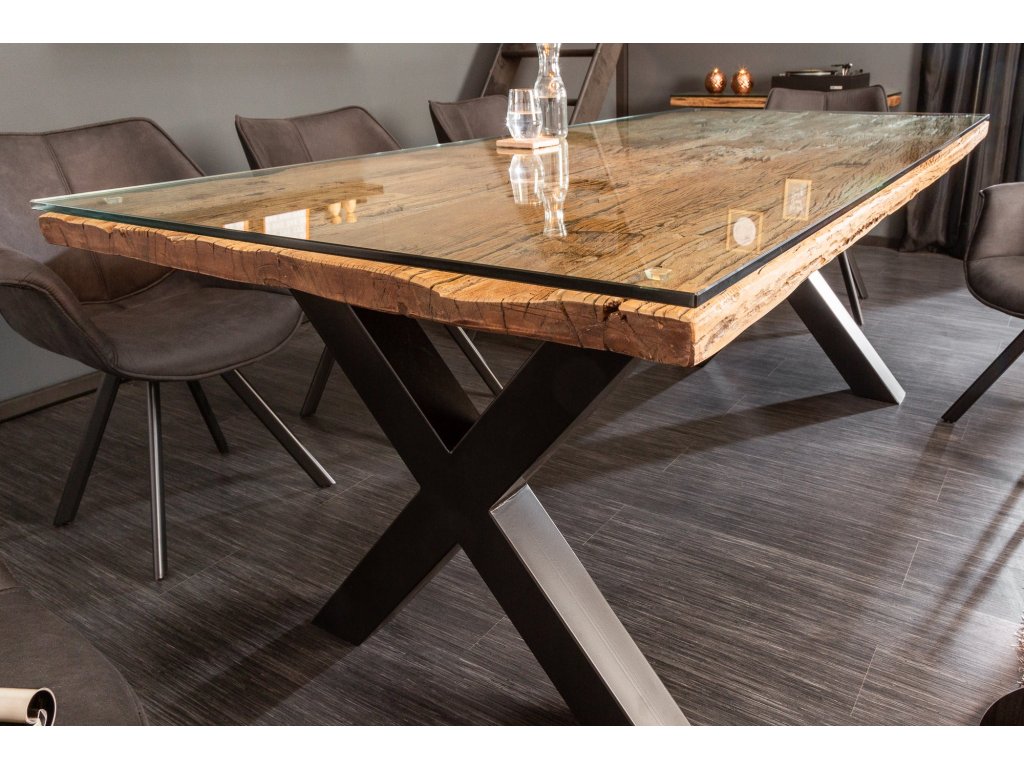 Jídelní stůl BARRACUDA 220cm X-nohy přírodní bez skleněné desky