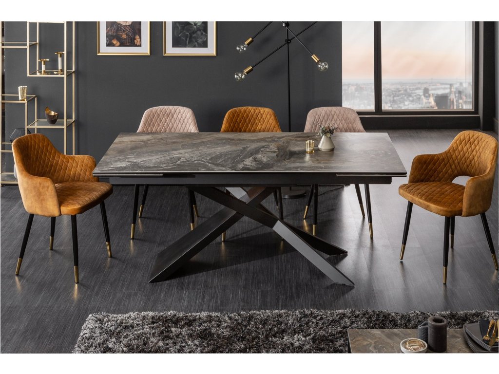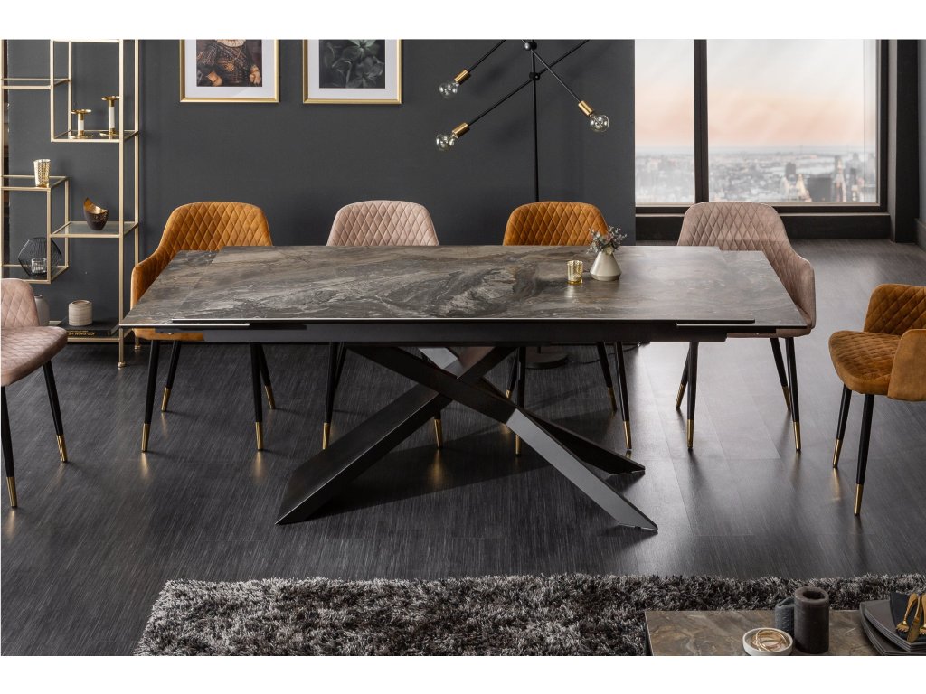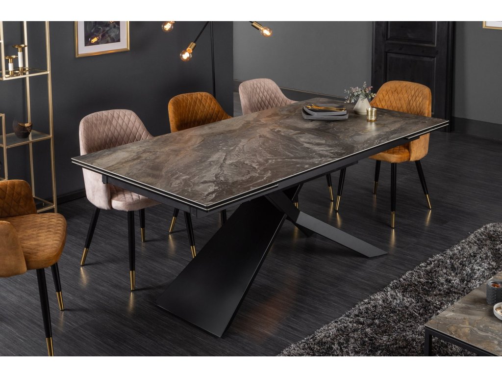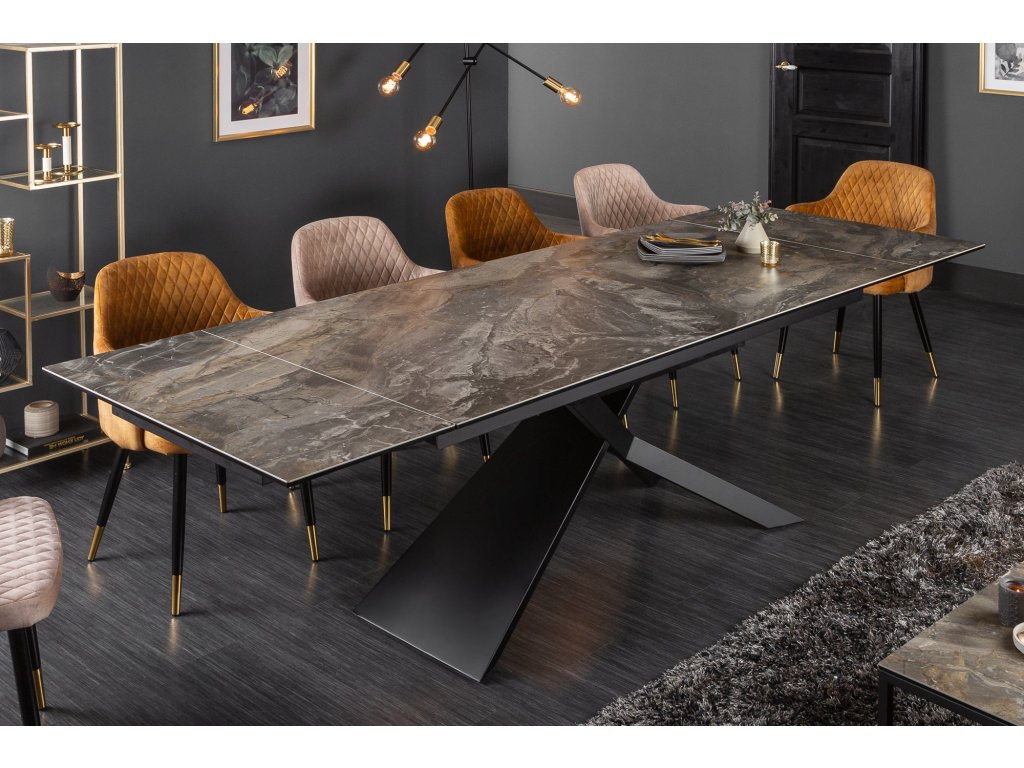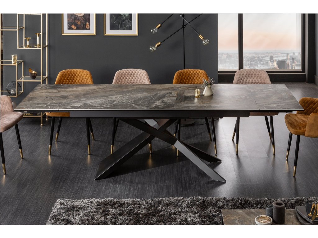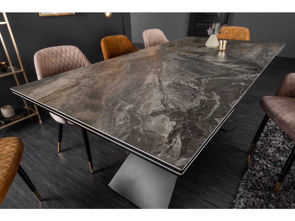 Jídelní stůl EUPHORIA 180-220-260cm keramický mramorový vzhled 10mm tvrzené sklo