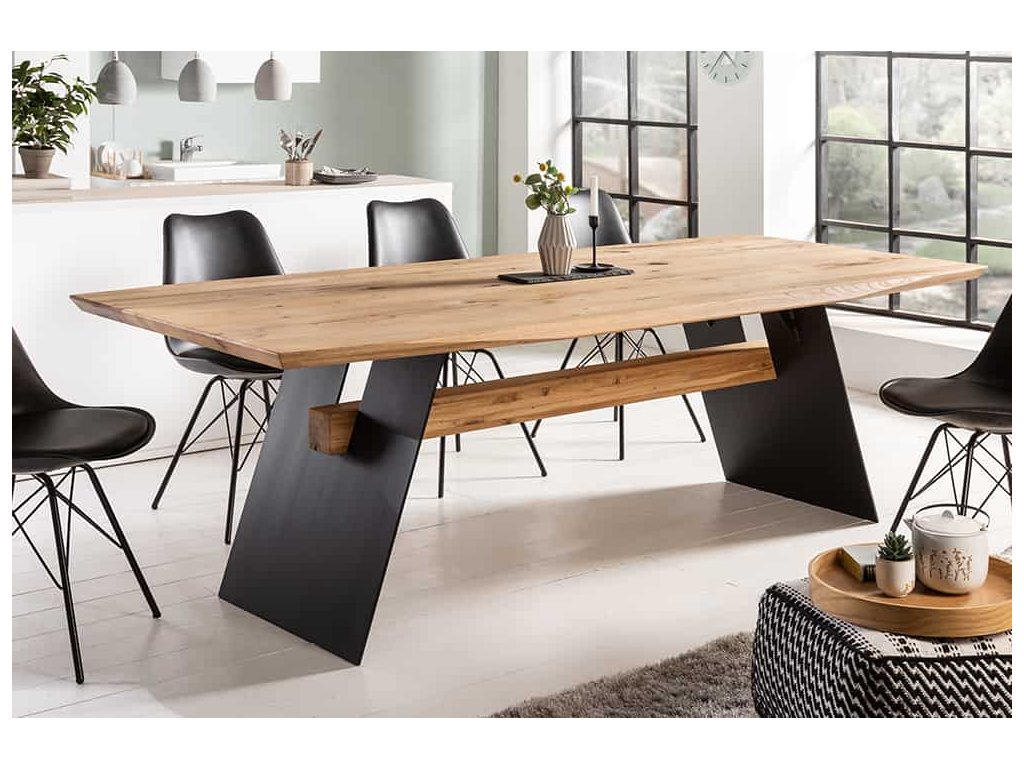 Jídelní stůl GRAND OAK 200cm ze dřeva divokého dubu a práškově lakovaného kovu