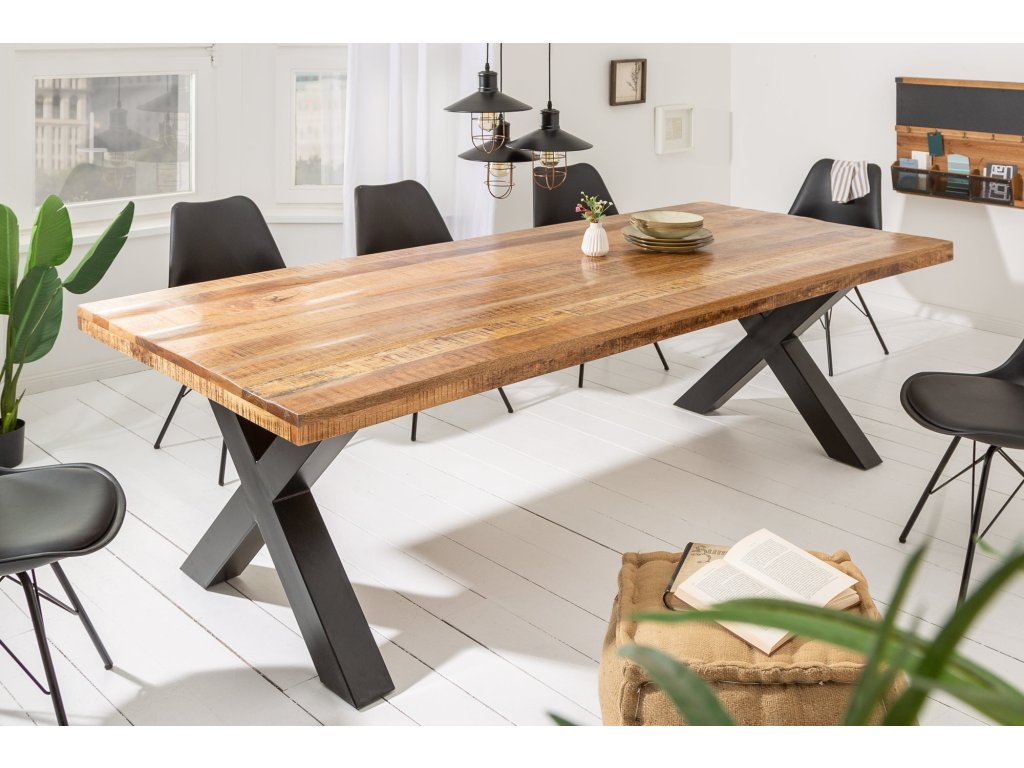 Jídelní stůl IRON CRAFT 240cm X-nohy mangové dřevo přírodní