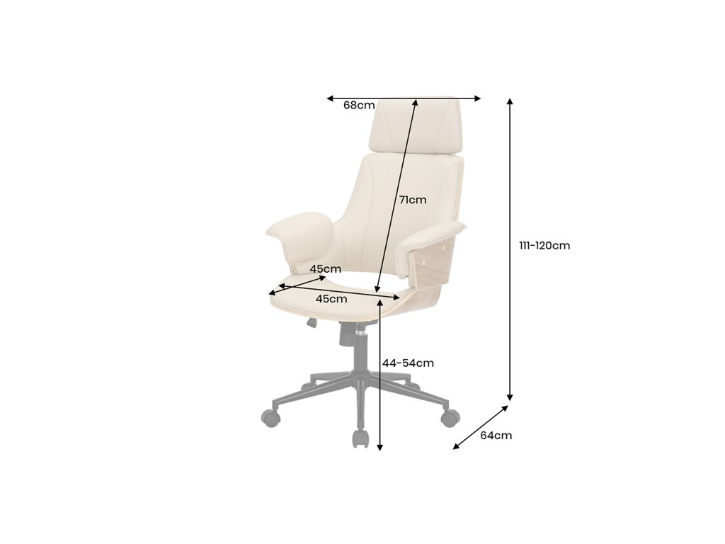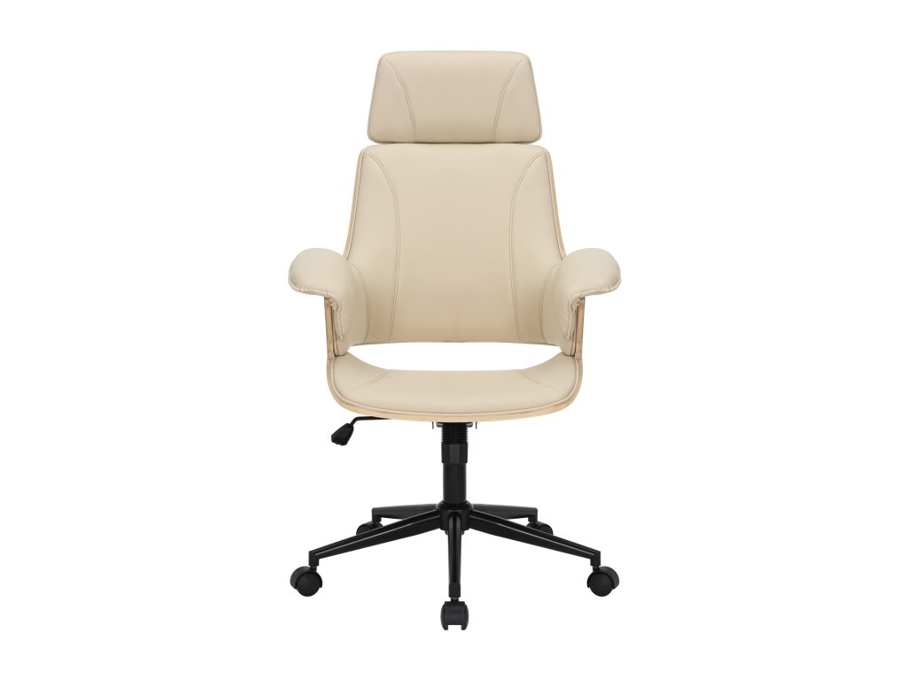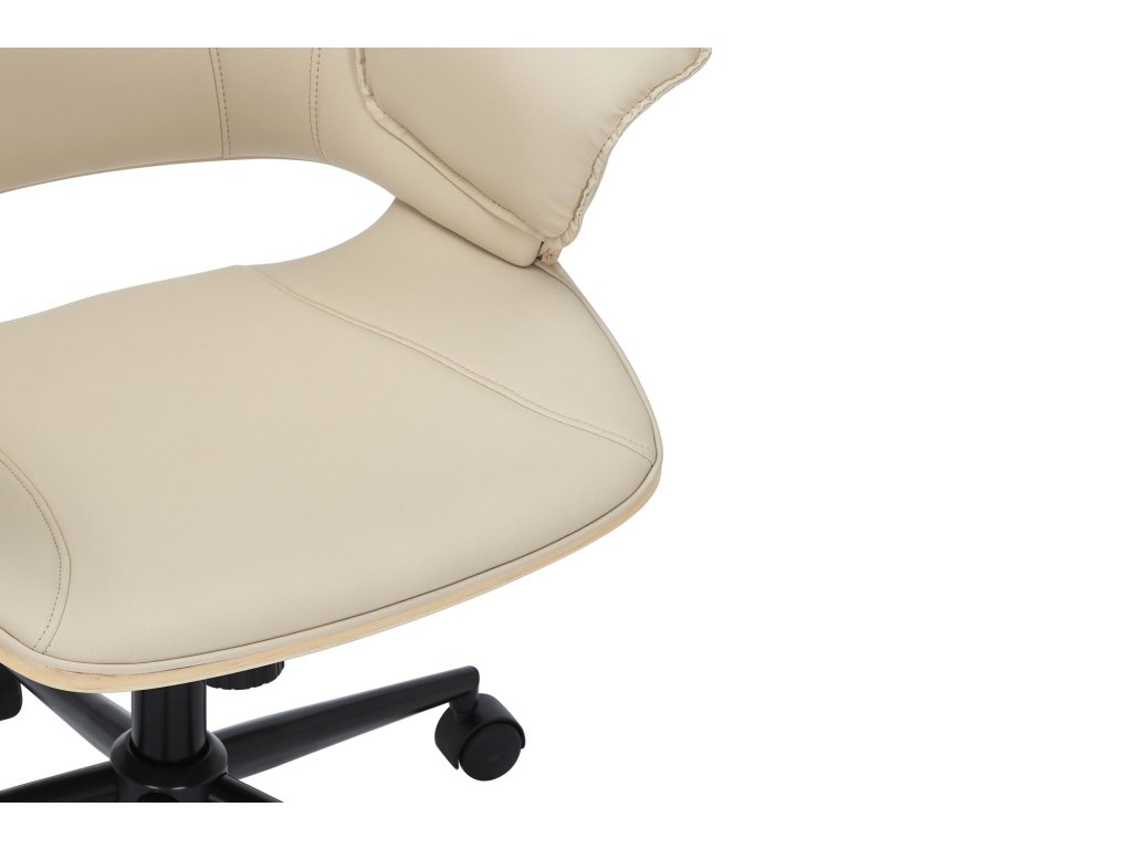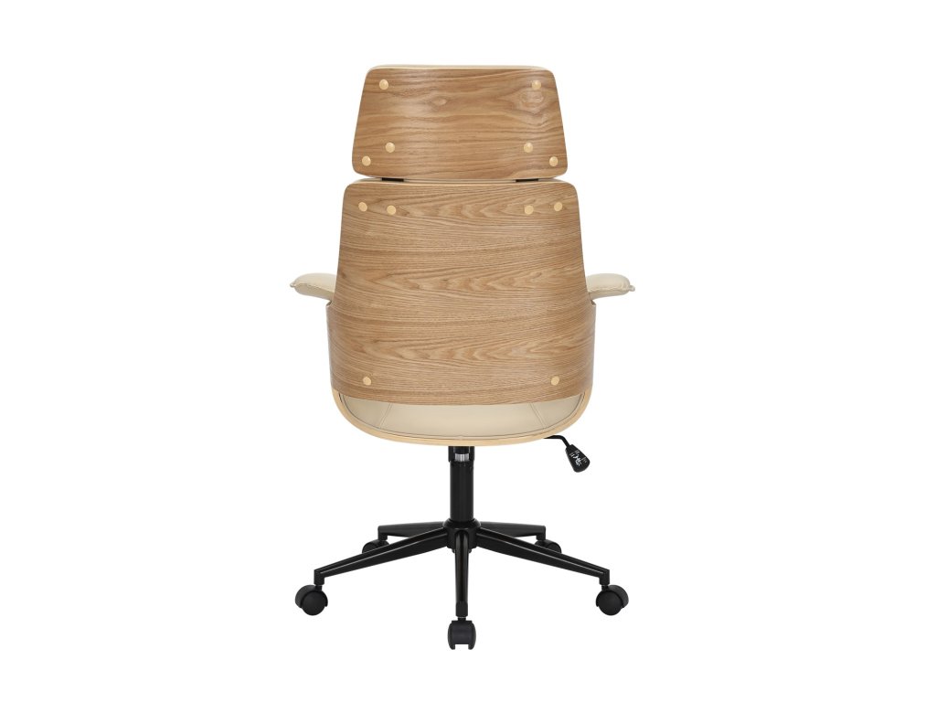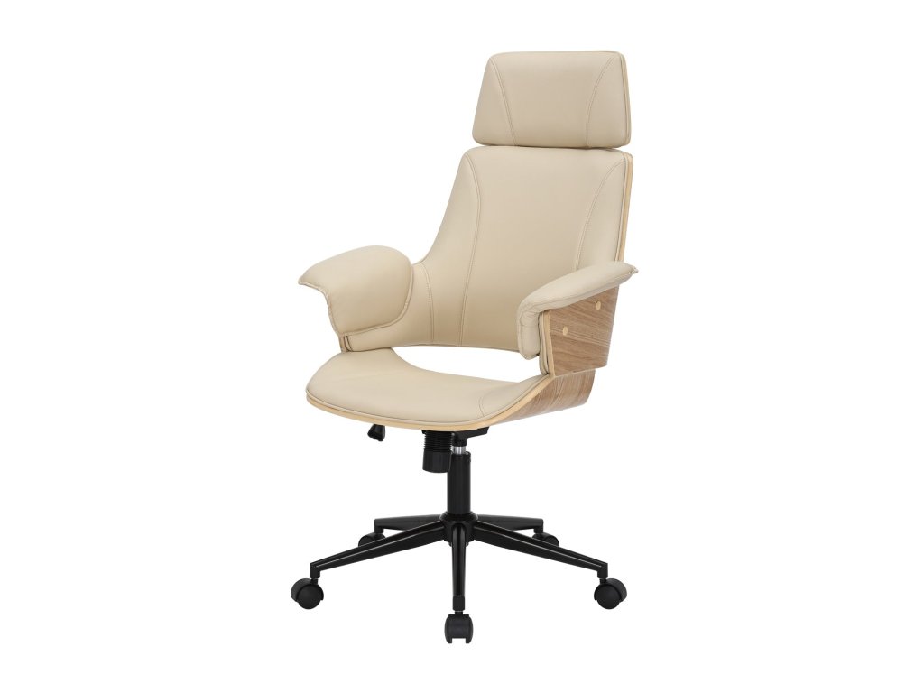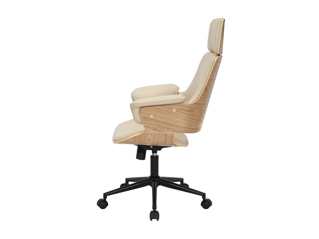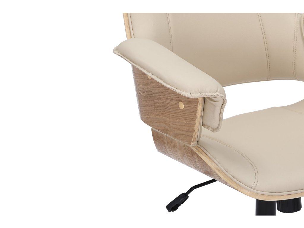 Kancelářská židle MANHATTAN 44-54cm otočná umělá kůže krémově béžová a dubové dřevo