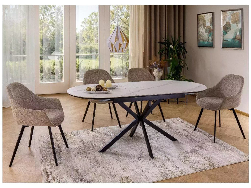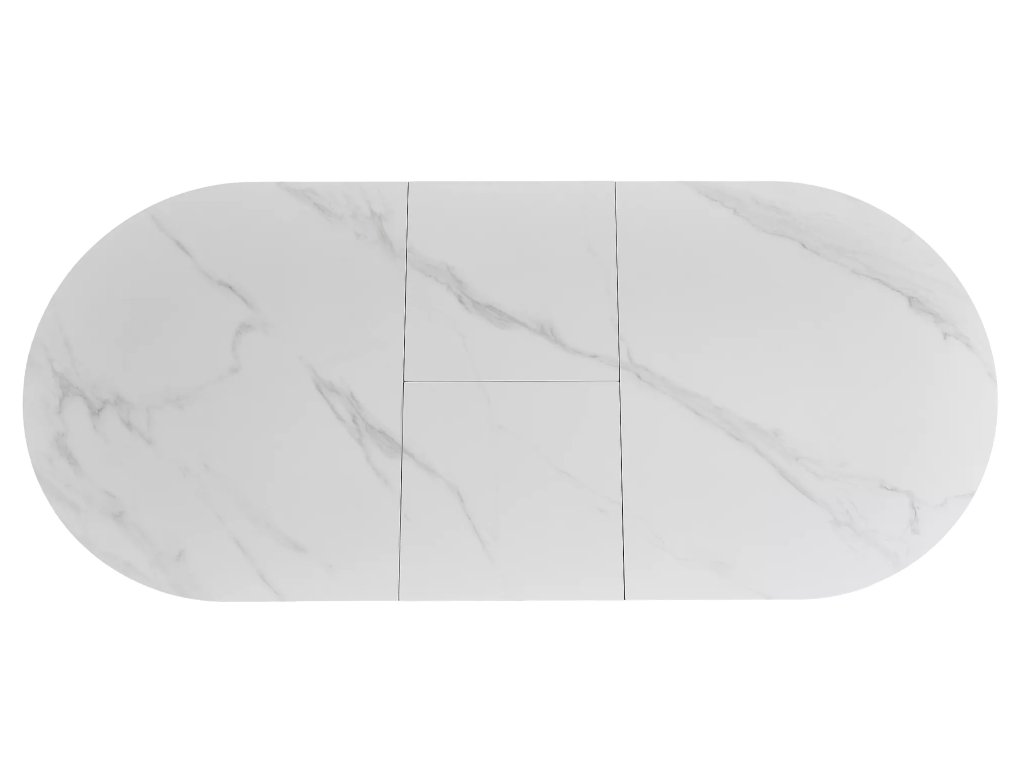 Rozkládací stůl, deska: keramika, rám: kov, barva: matná bílá / matná černá.