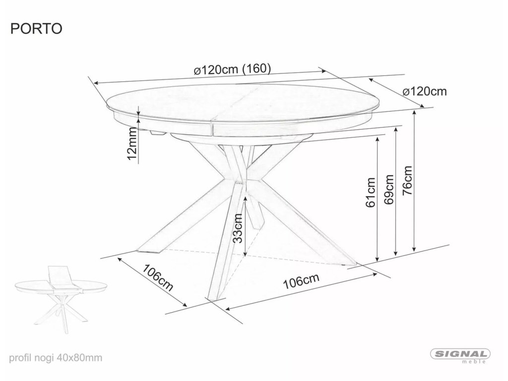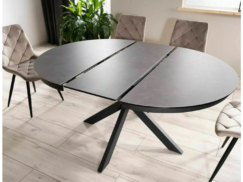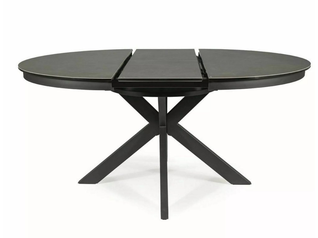 Rozkládací stůl, deska: tvrzené sklo + španělská keramika, CORSO GREY, rám: kov, barva: tmavě šedá / matná černá. Rozměry v rozloženém stavu: 120x160cm.