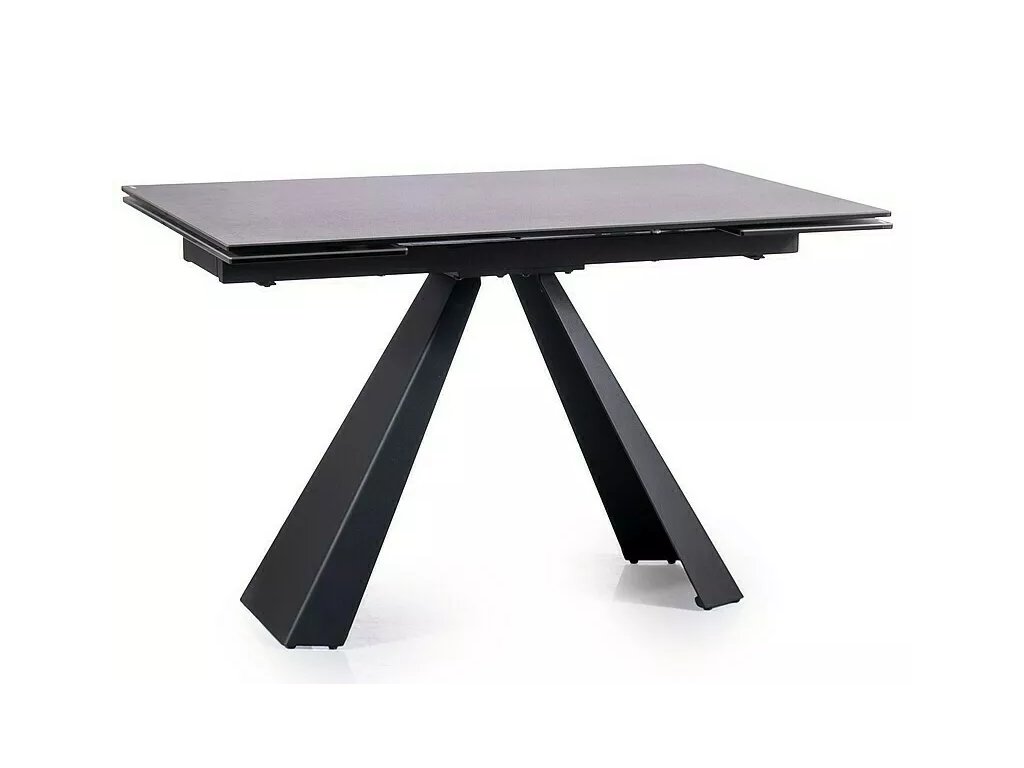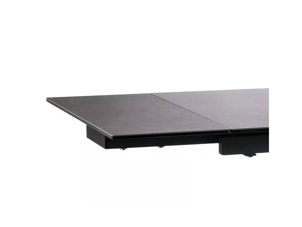 Rozkládací stůl, deska: tvrzené sklo + španělská keramika, mramorový efekt, rám: kov, barva: tmavě šedá / matná černá.