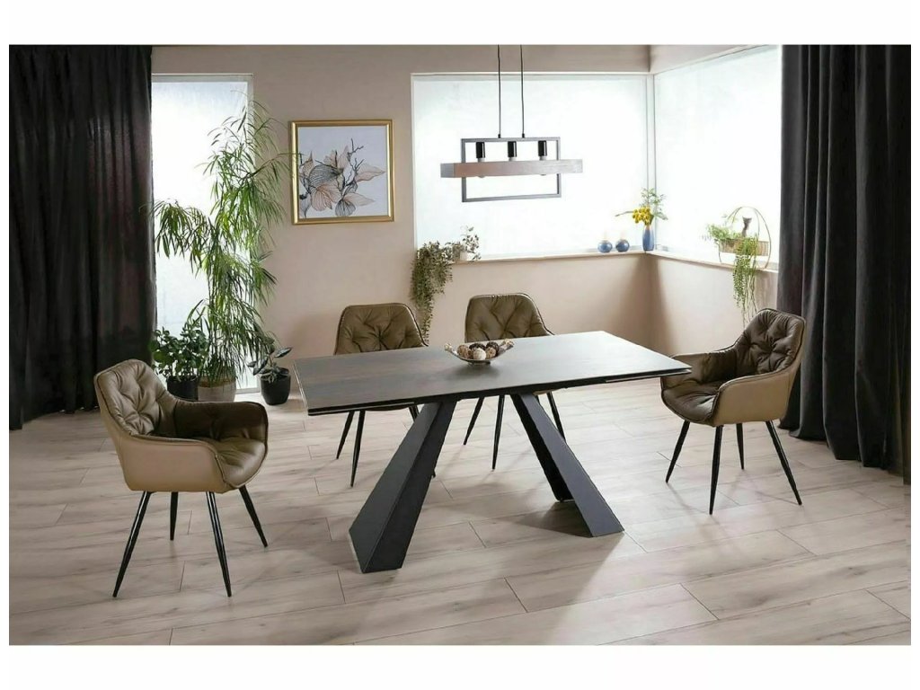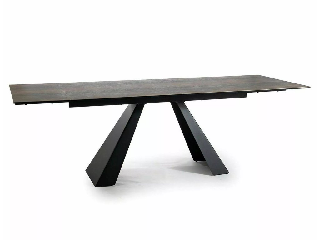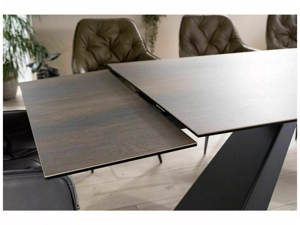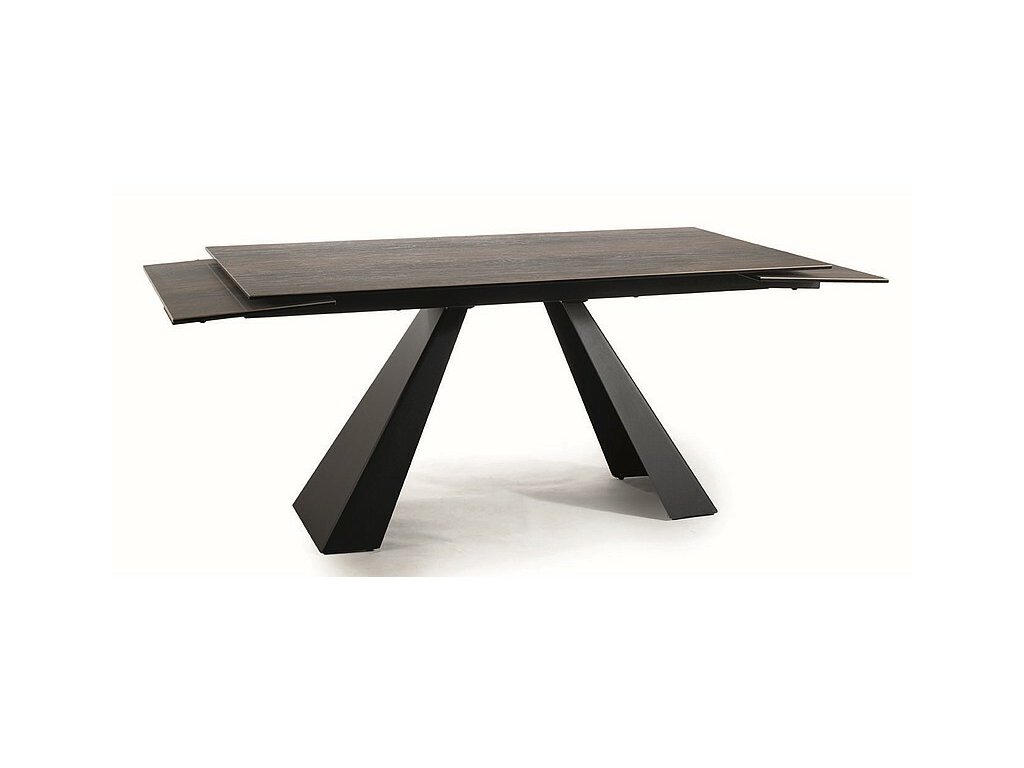 Rozkládací stůl, deska: tvrzené sklo + španělská keramika LEGNO, efekt dřeva, rám: kov, barva: hnědá / matná černá.