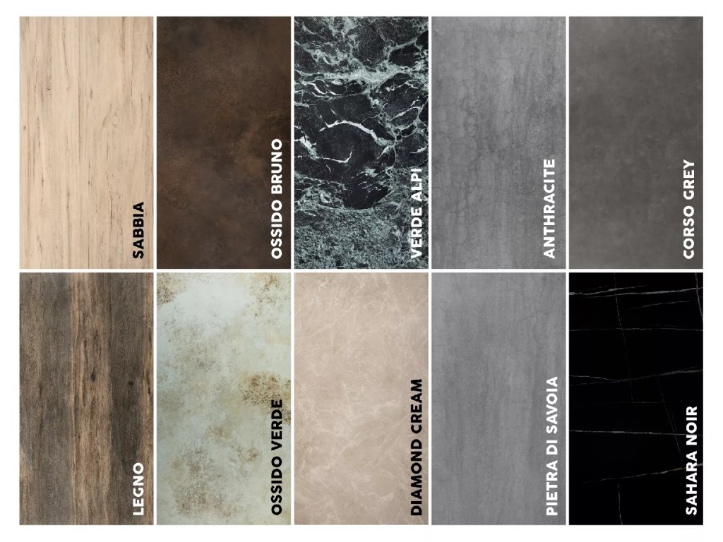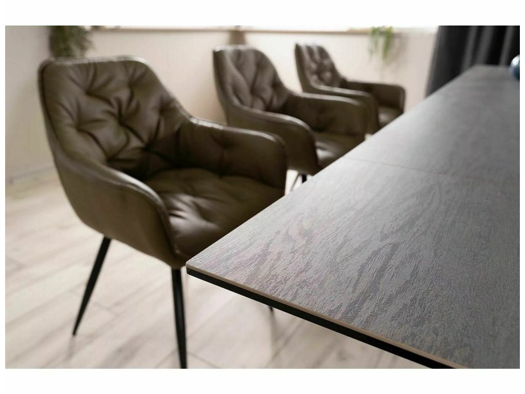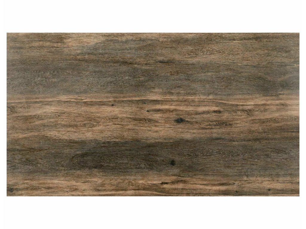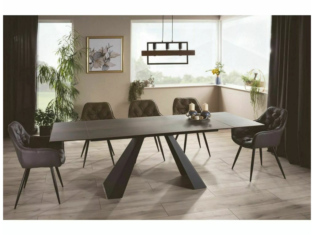 Rozkládací stůl, deska: tvrzené sklo + španělská keramika LEGNO, efekt dřeva, rám: kov, barva: hnědá / matná černá.
