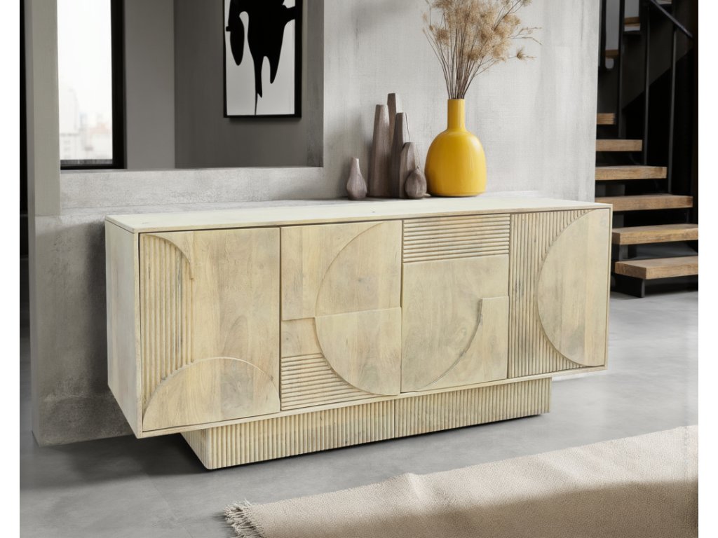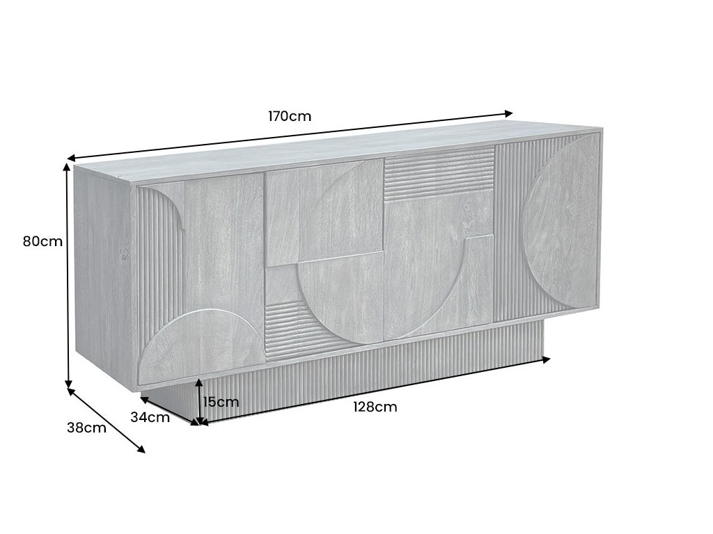 Komoda ART DECO 170cm 3D mangové dřevo přírodní bílá