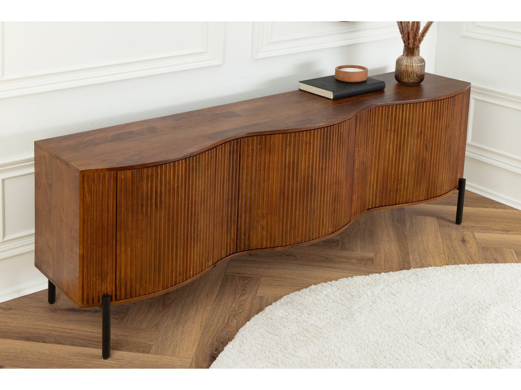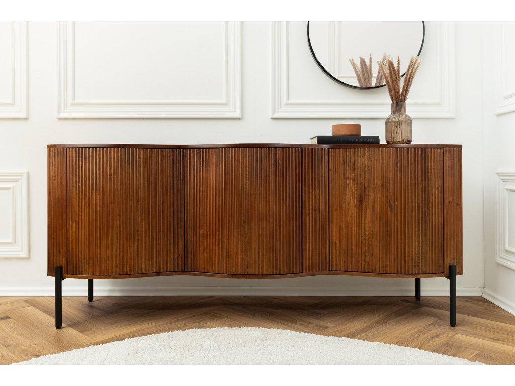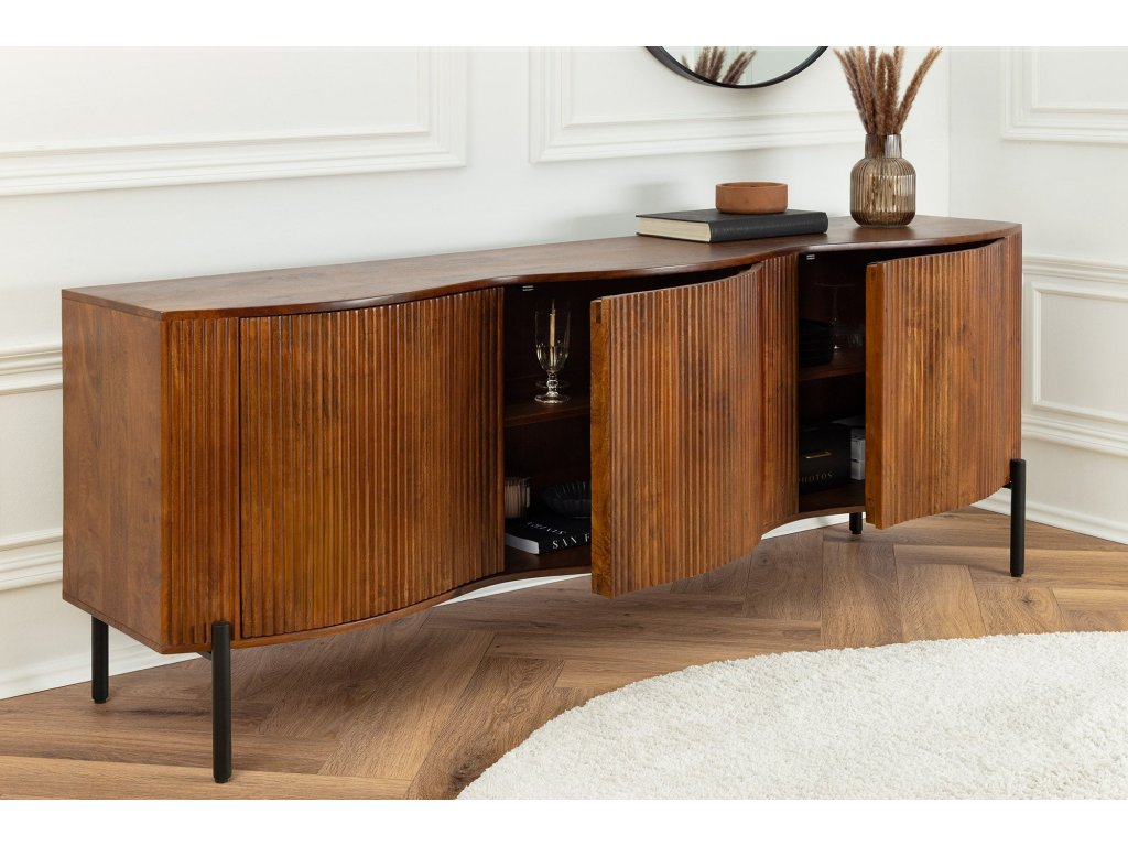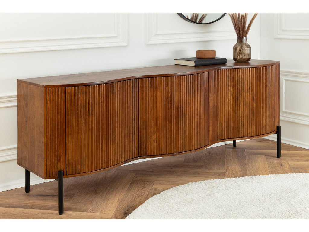Komoda GRANDEUR 180cm 3D retro styl mangové dřevo hnědá s černými kovovými nohami