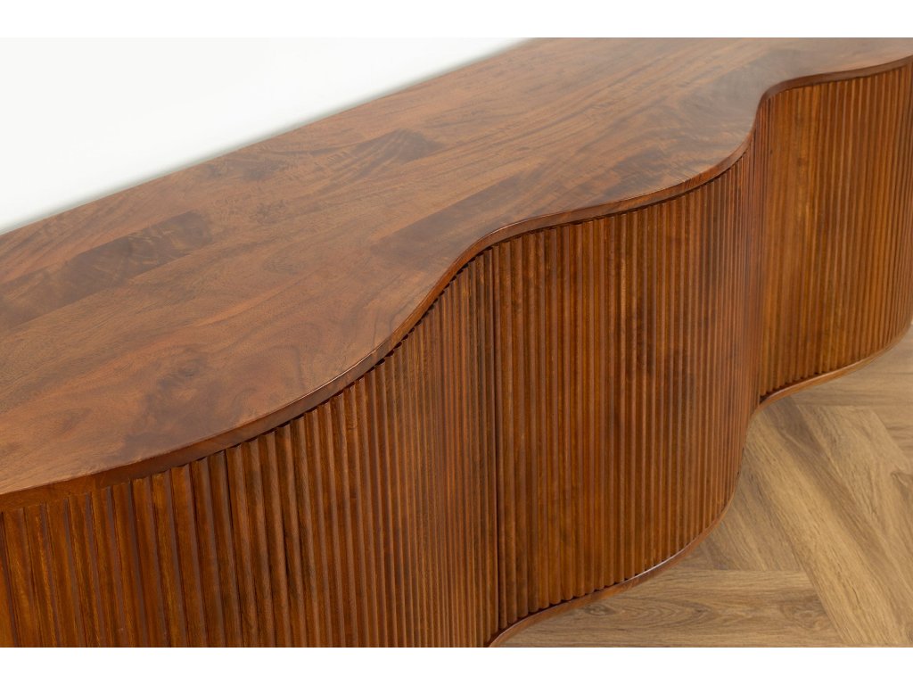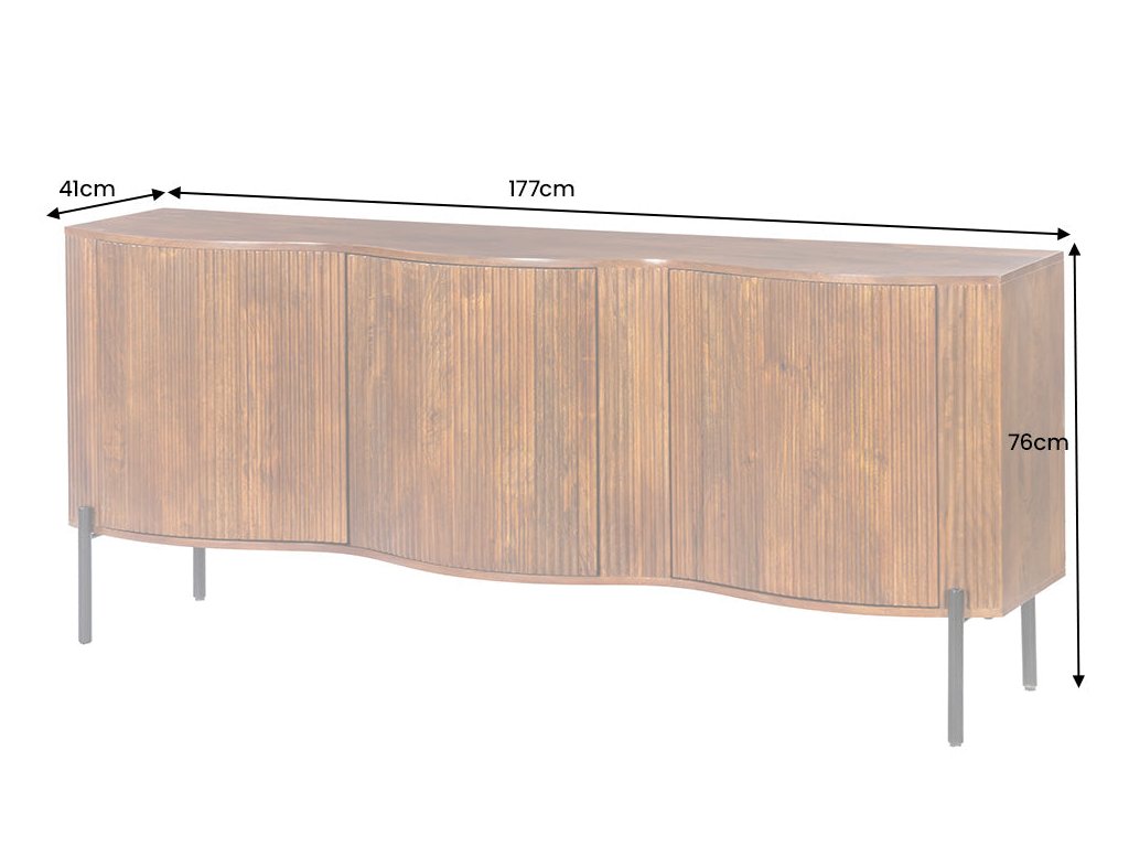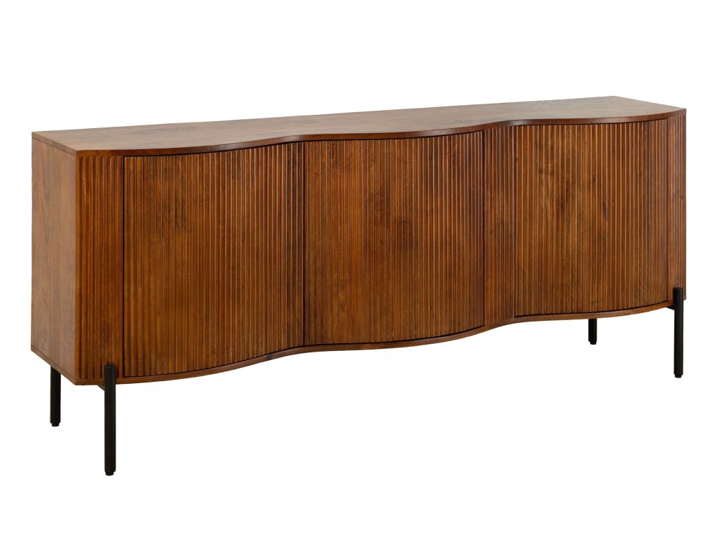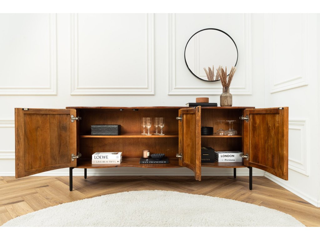 Komoda GRANDEUR 180cm 3D retro styl mangové dřevo hnědá s černými kovovými nohami