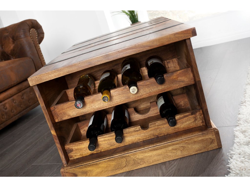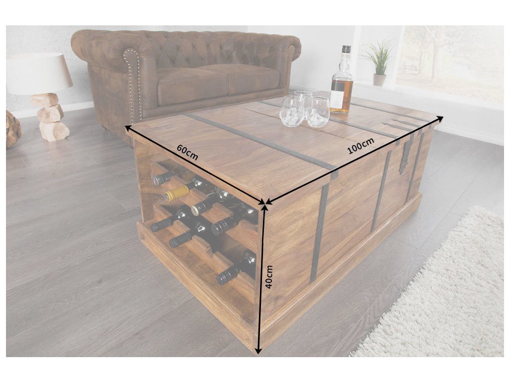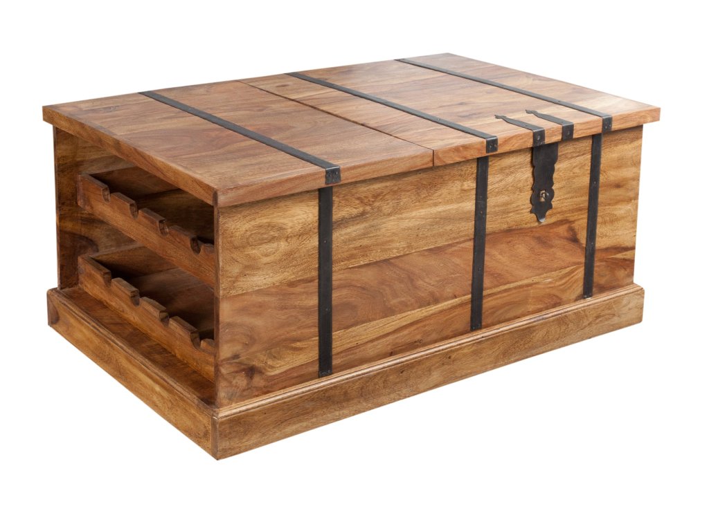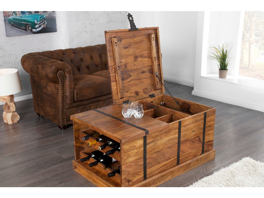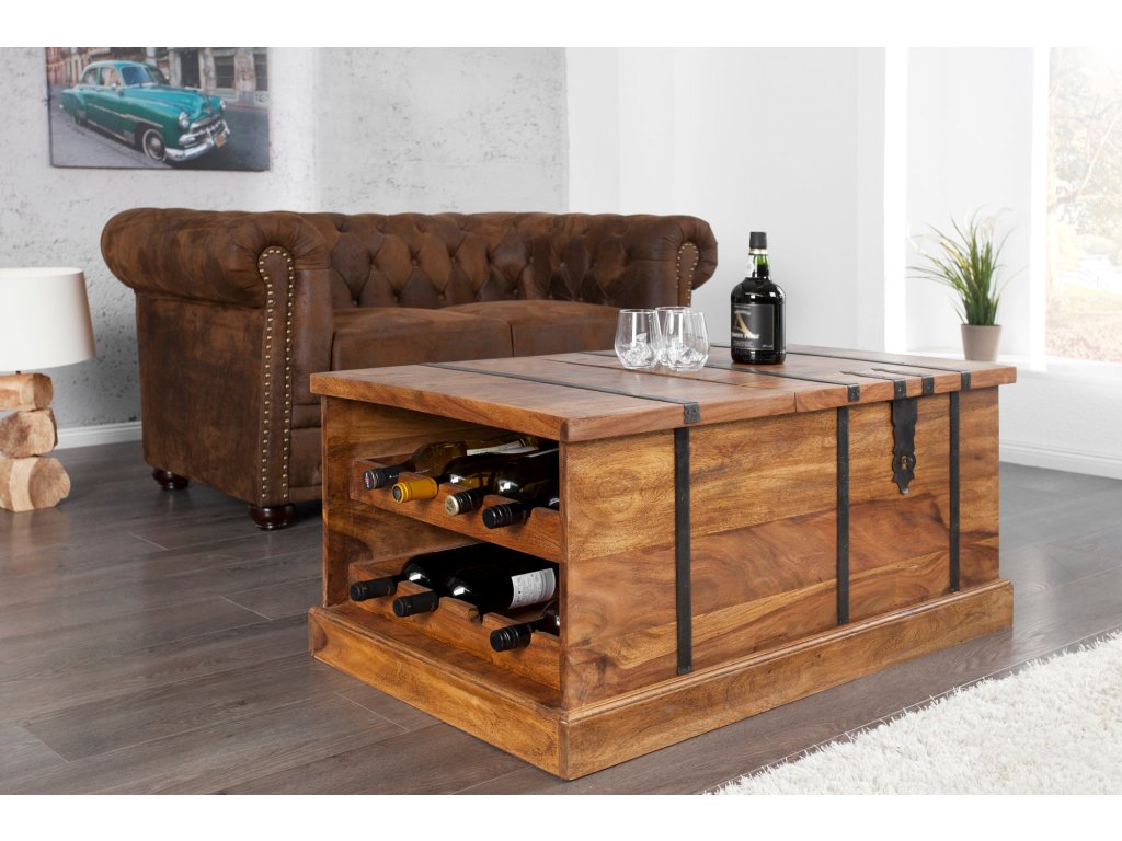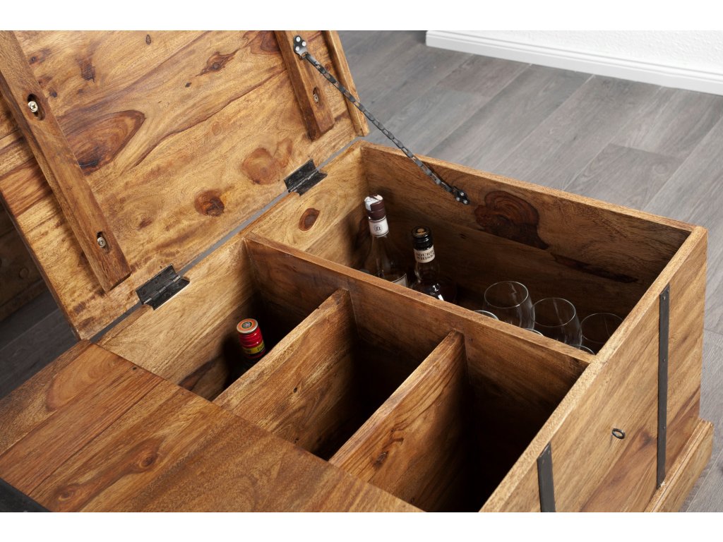 Konferenční stolek a bar BODEGA 100cm ze sheeshamového dřeva s kovovým kováním