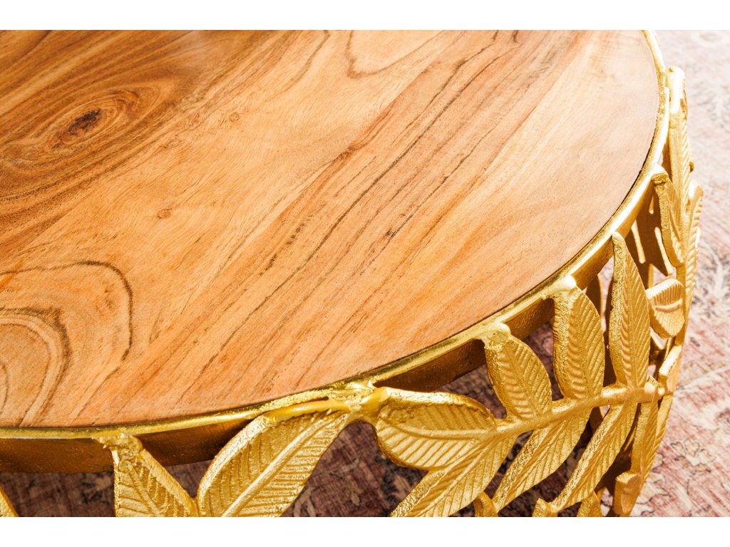 Konferenční stolek ABSTRACT LEAF 54-68cm sada 2 zlatých s deskami z akáciového dřeva