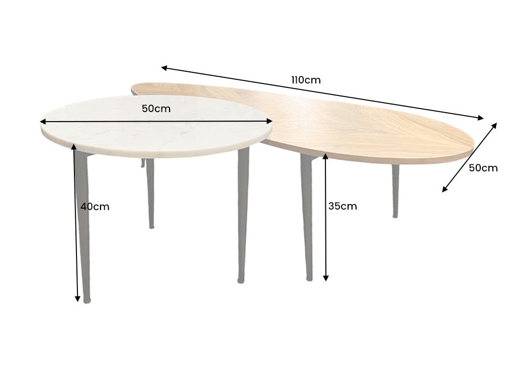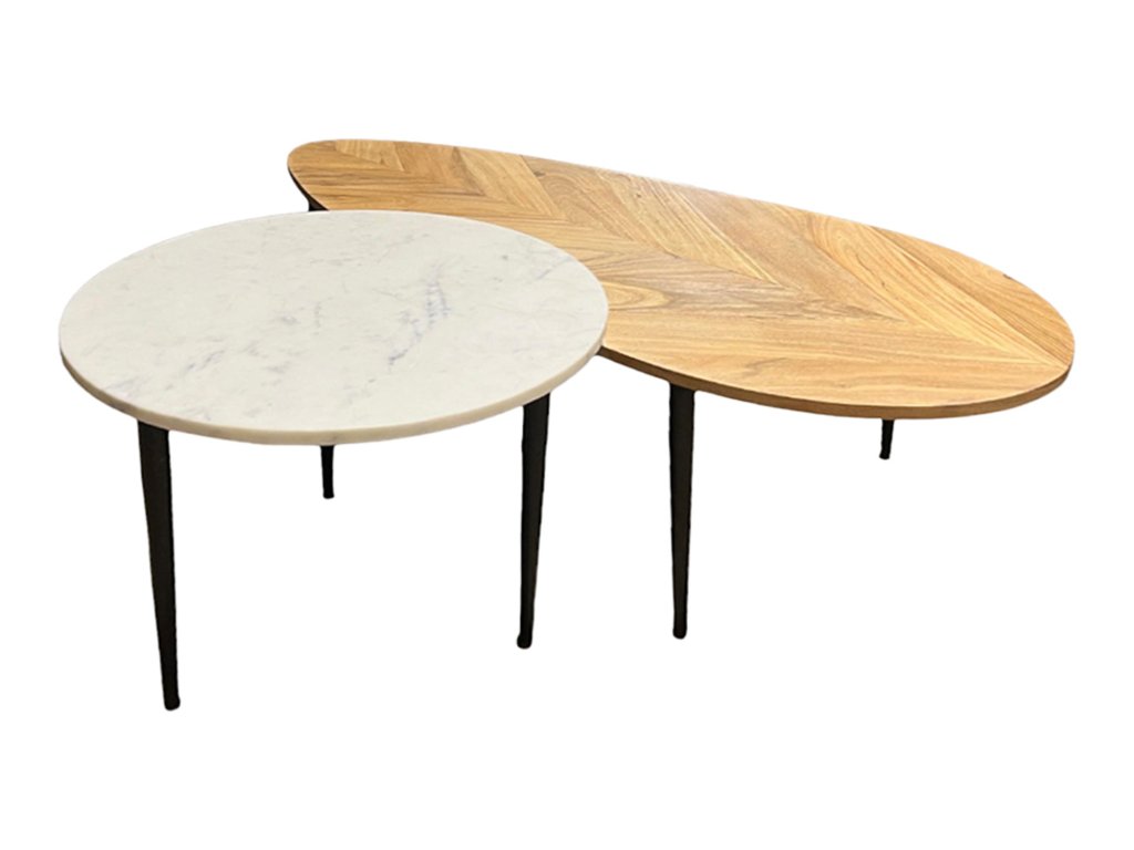 Konferenční stolek ADLON set 2 ks akáciového dřeva přírodního a mramoru bílého