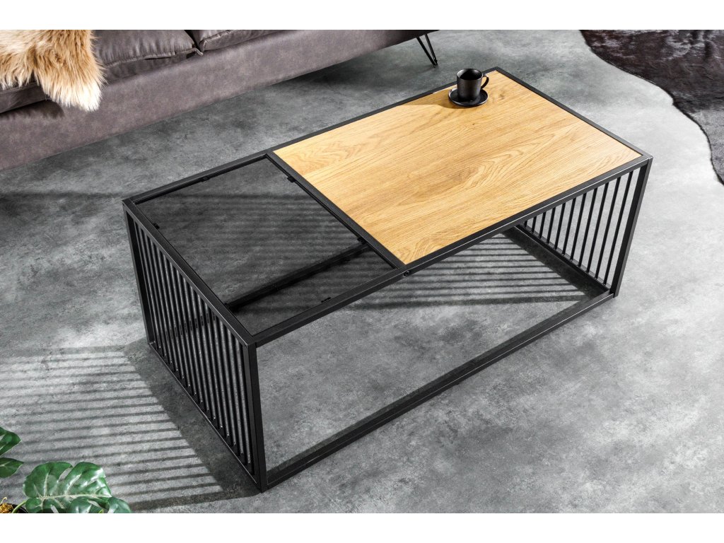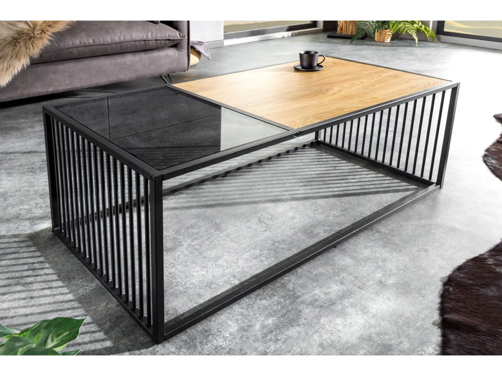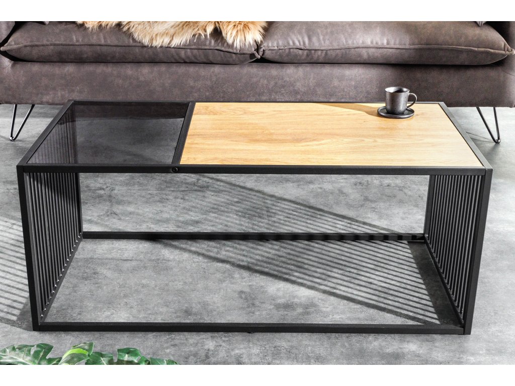 Konferenční stolek ARCHITECTURE 100cm vzhled divokého dubu a kouřové sklo