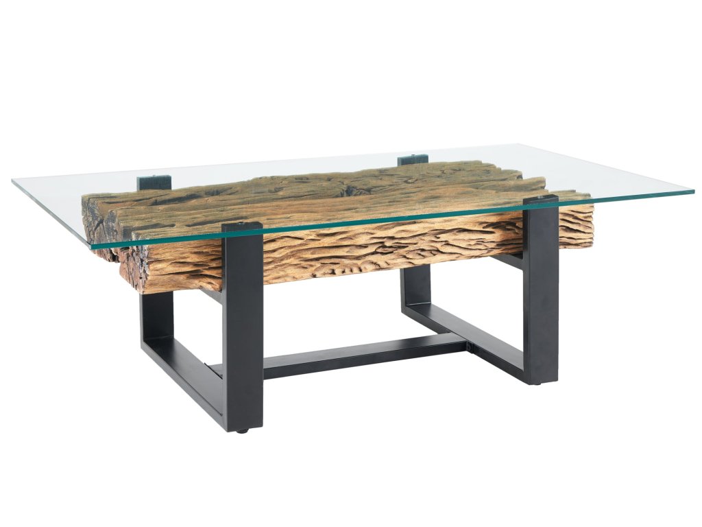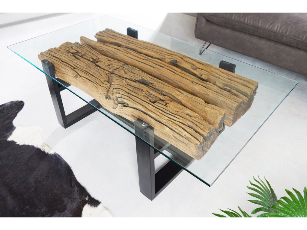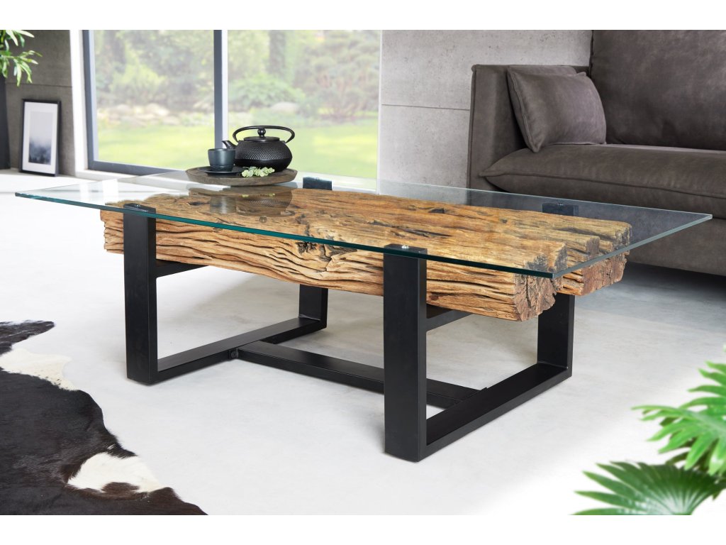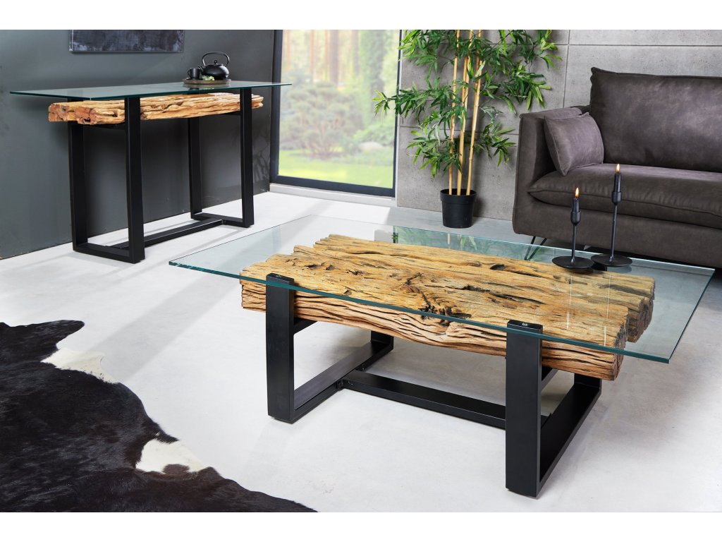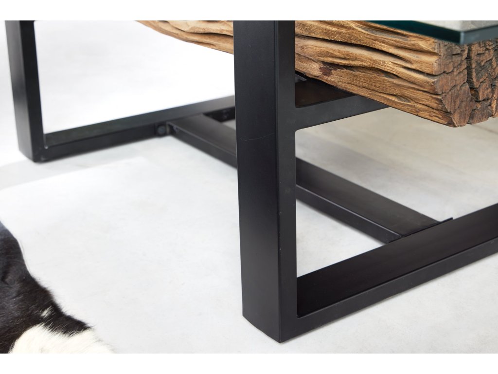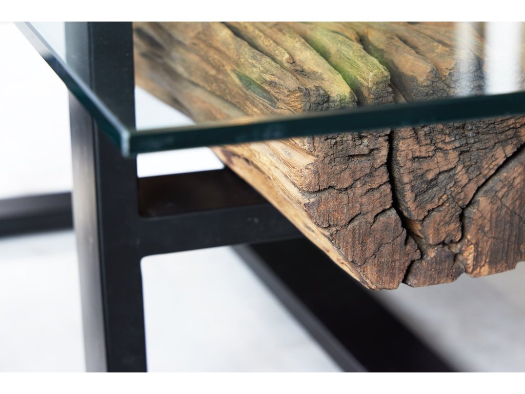 Konferenční stolek BARRACUDA 130 cm z recyklovaného teakového dřeva s deskou z tvrzeného skla