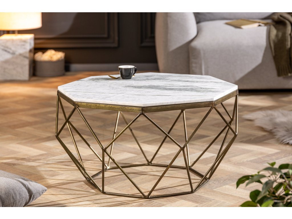 Konferenční stolek DIAMOND 70cm mramor bílý