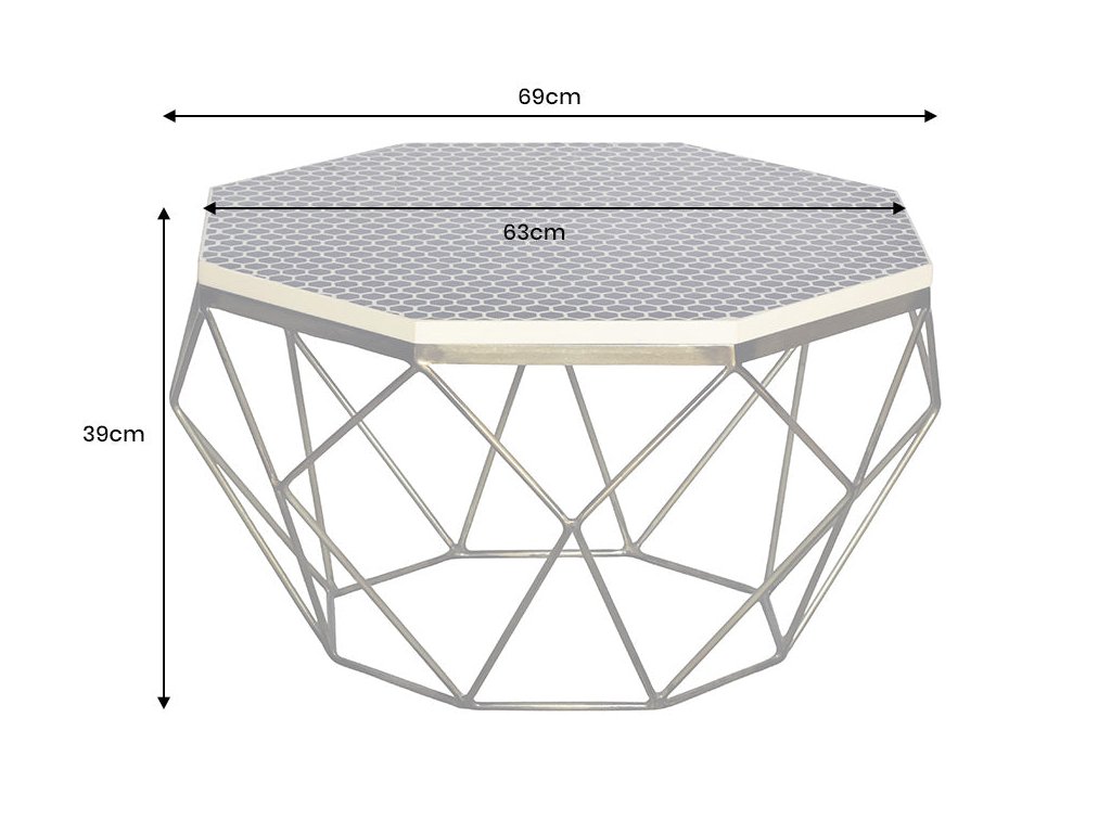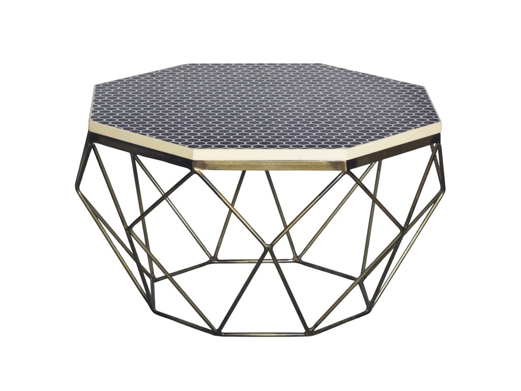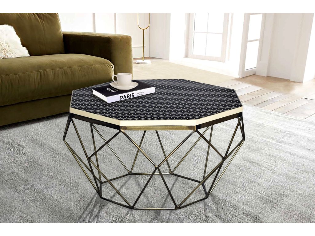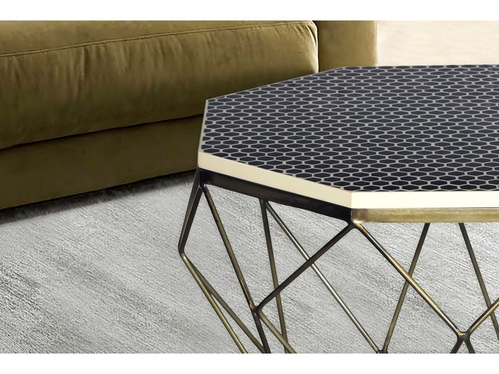 Konferenční stolek DIAMOND BONE INLAY 70cm stojan železná mosaz deska stolu z buvolích kostí černá bílá