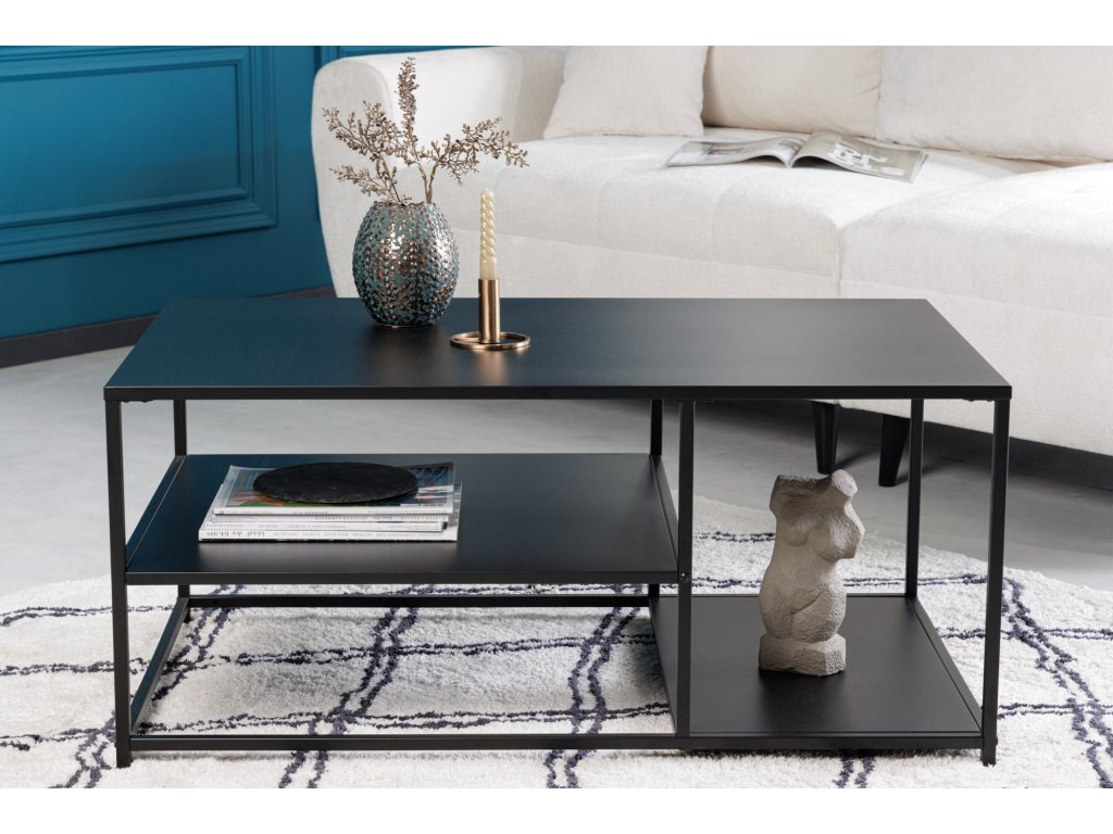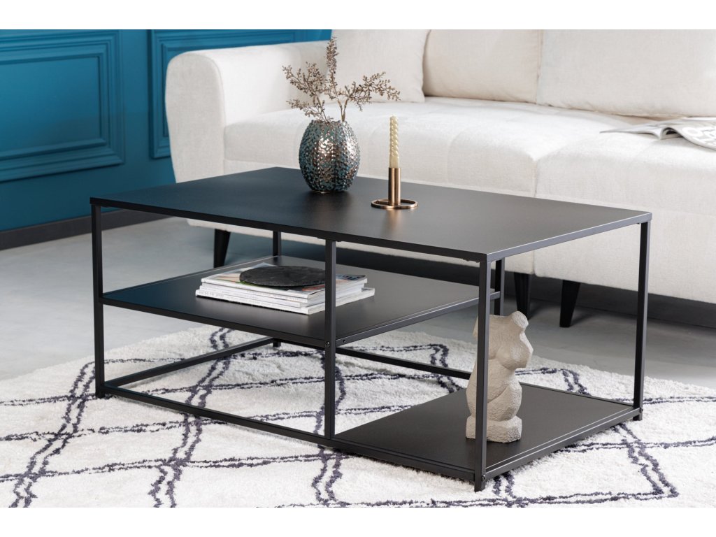 Konferenční stolek DURA STEEL 100 cm se 2 podnosy práškově lakovaný kov černý
