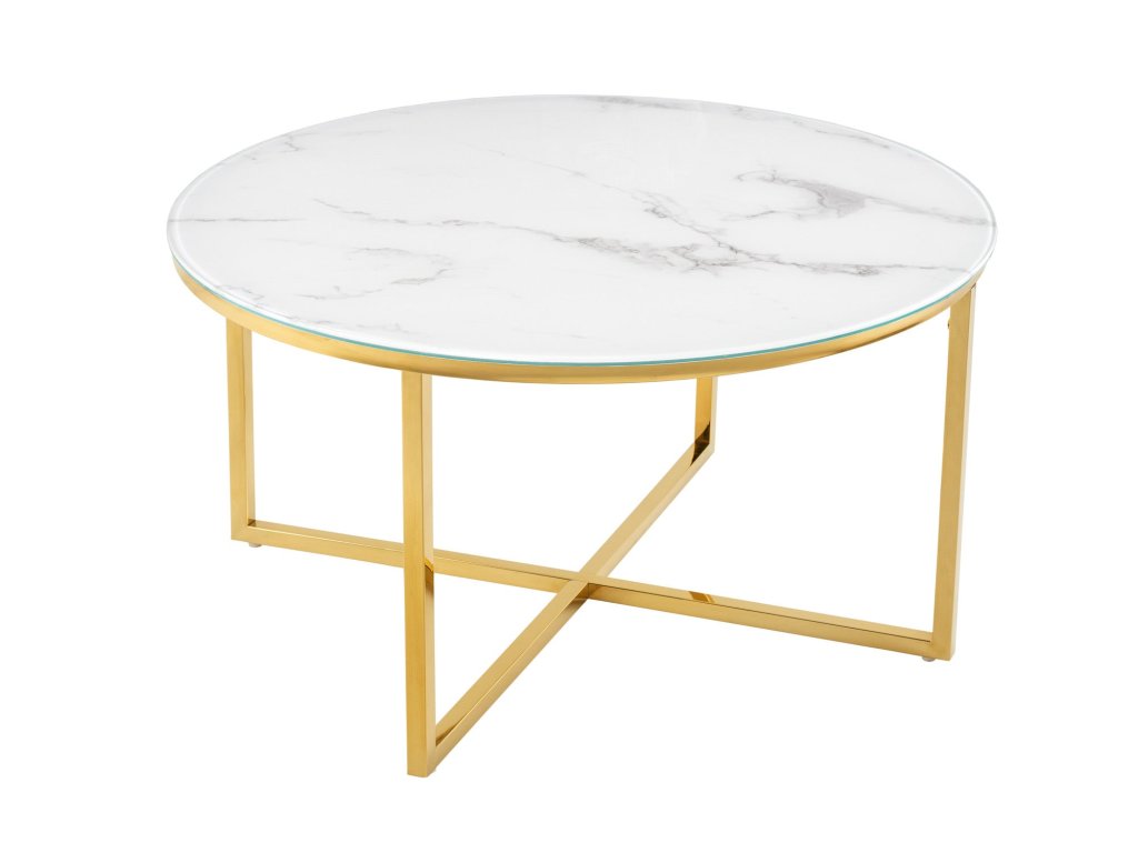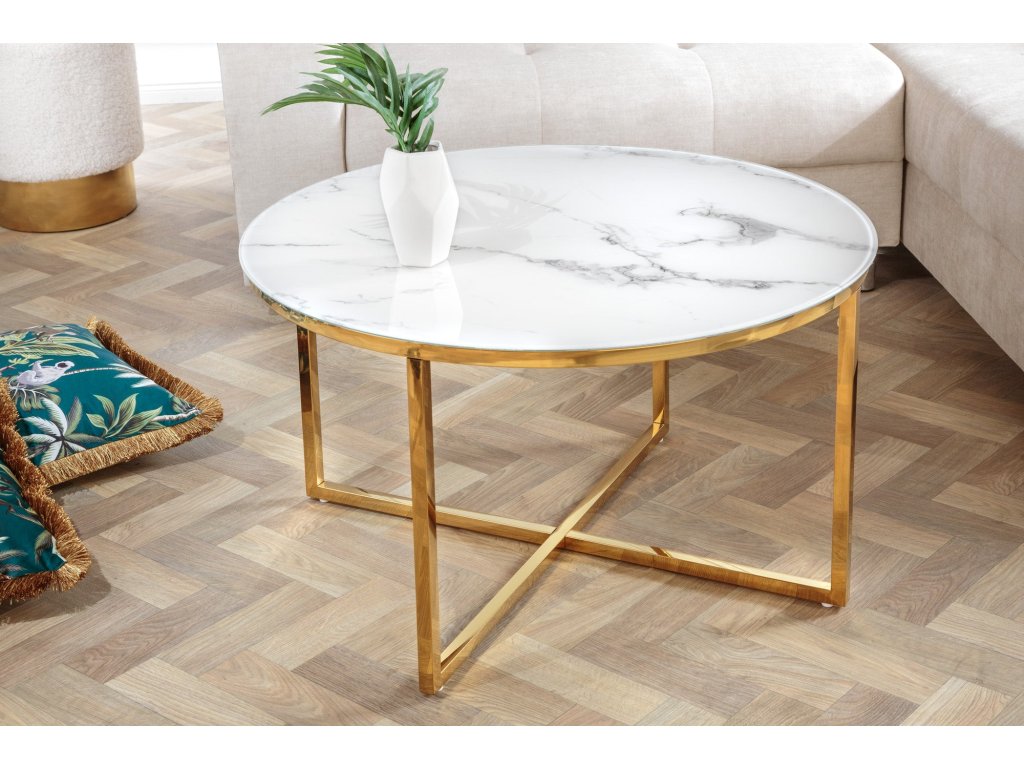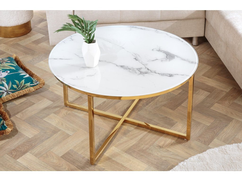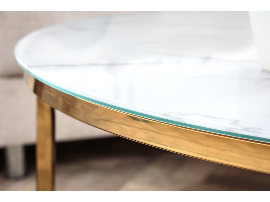 Konferenční stolek ELEGANCE 80cm mramorový vzhled bílé zlaté nohy