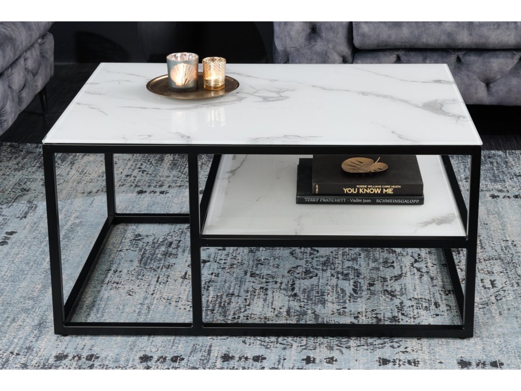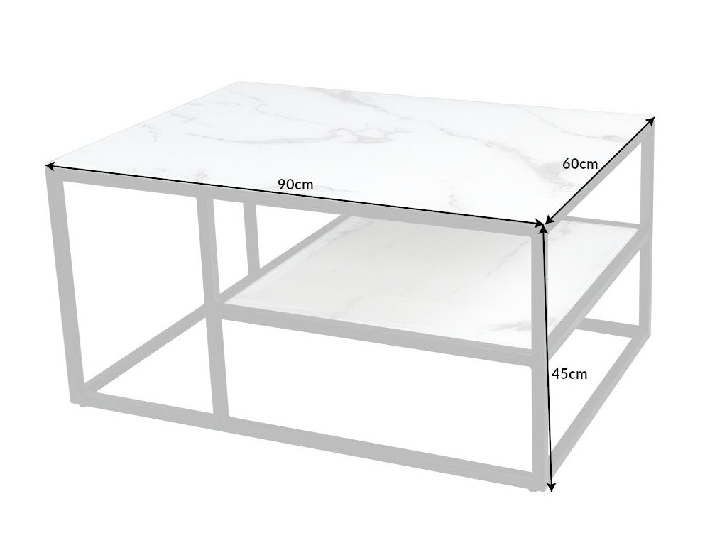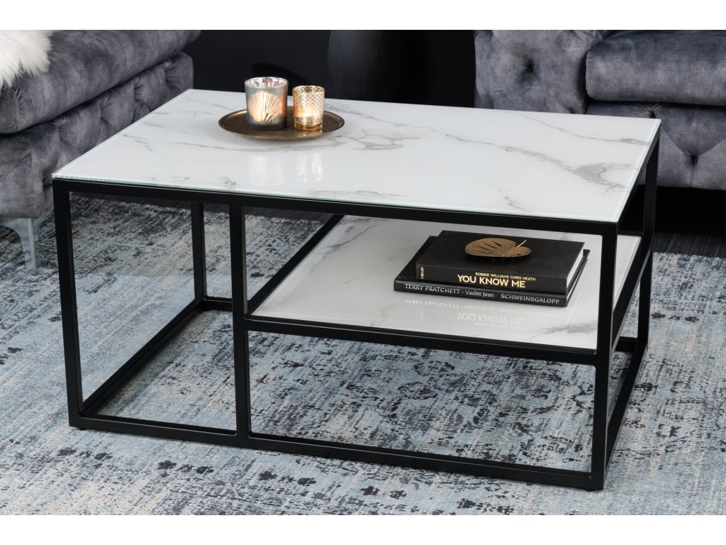 Konferenční stolek ELEGANCE 90cm mramorový vzhled bílý černý rám