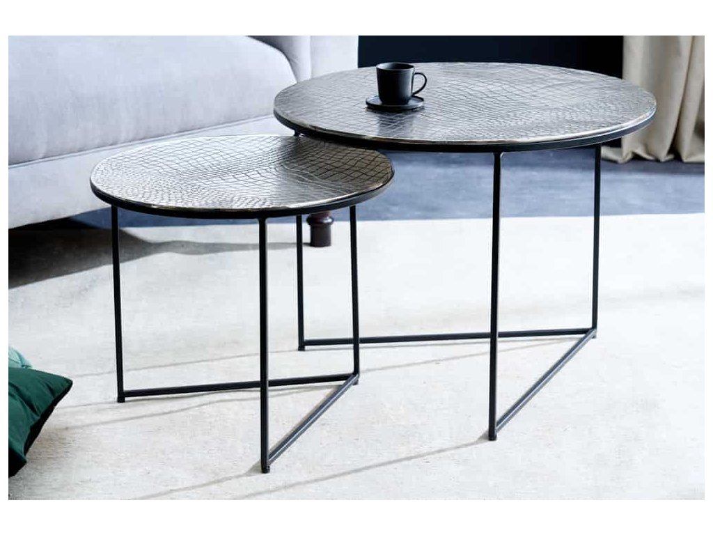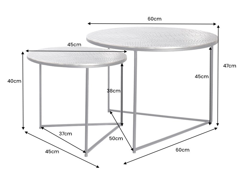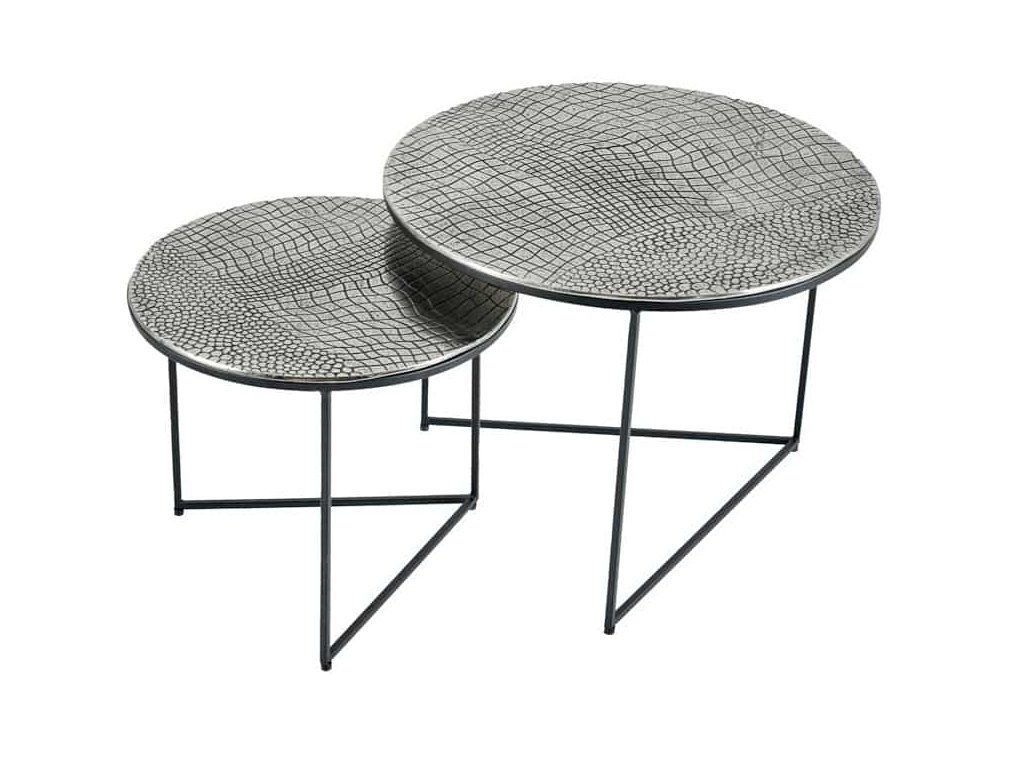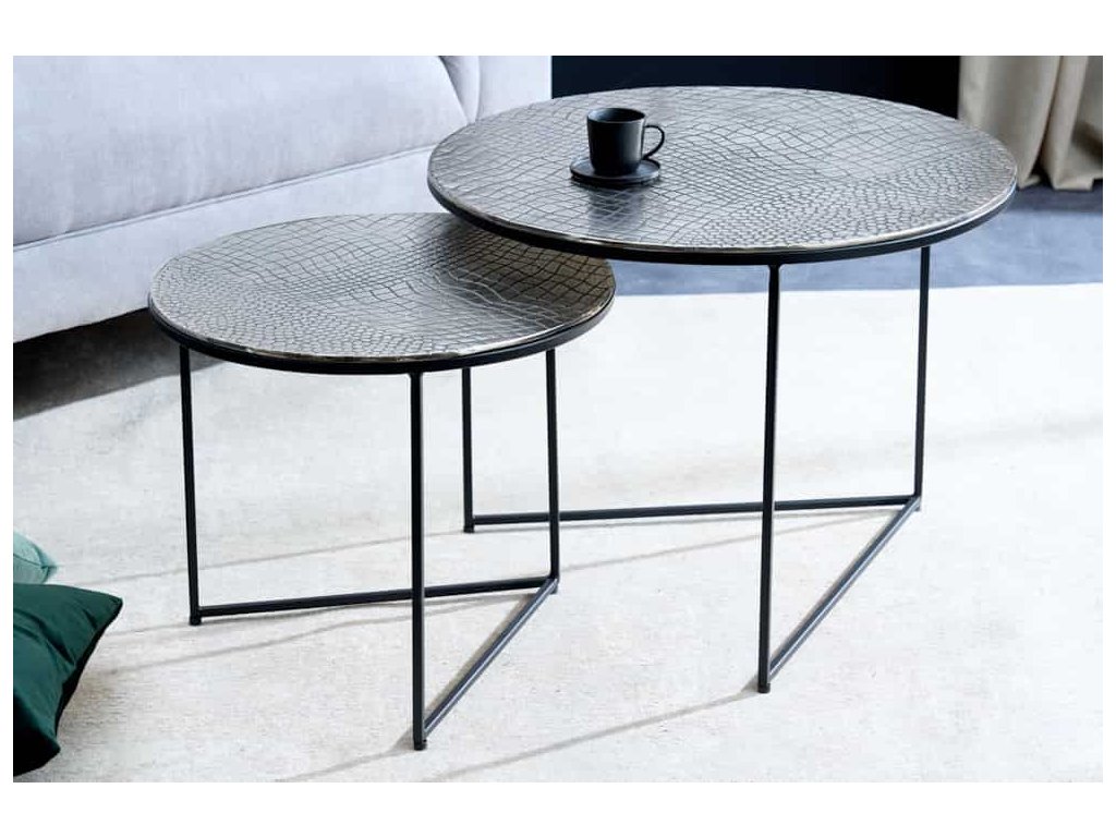 Konferenční stolek ELEMENTS 60 cm krokodýlí sada 2ks starožitných stříbrných