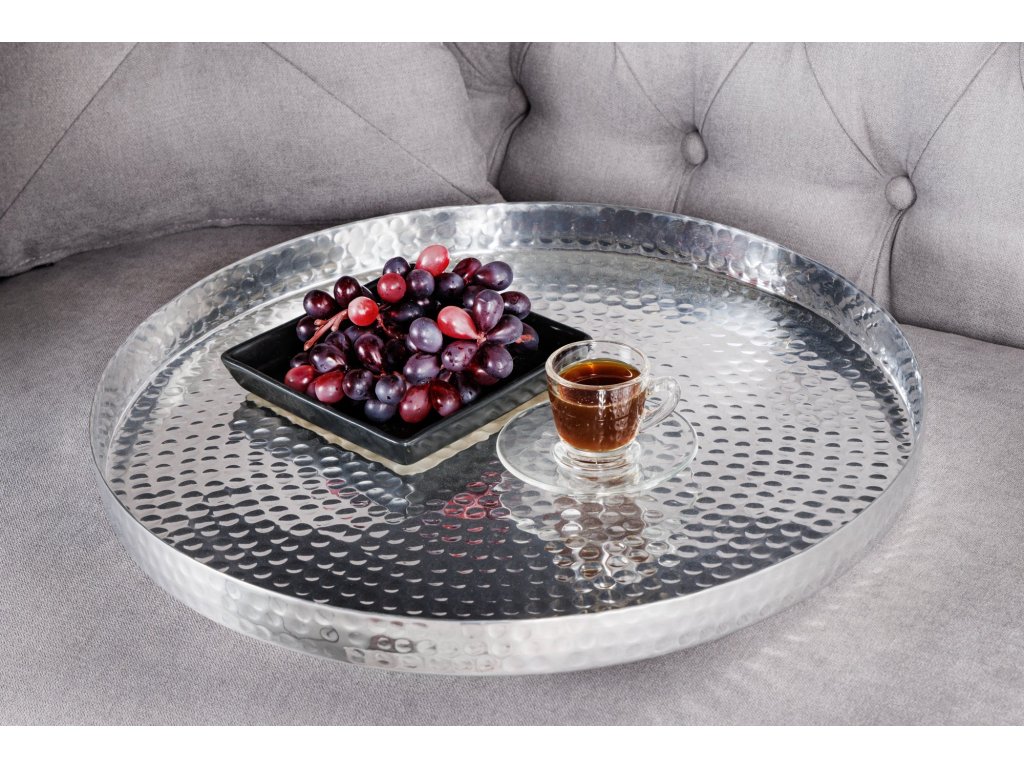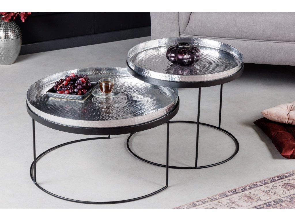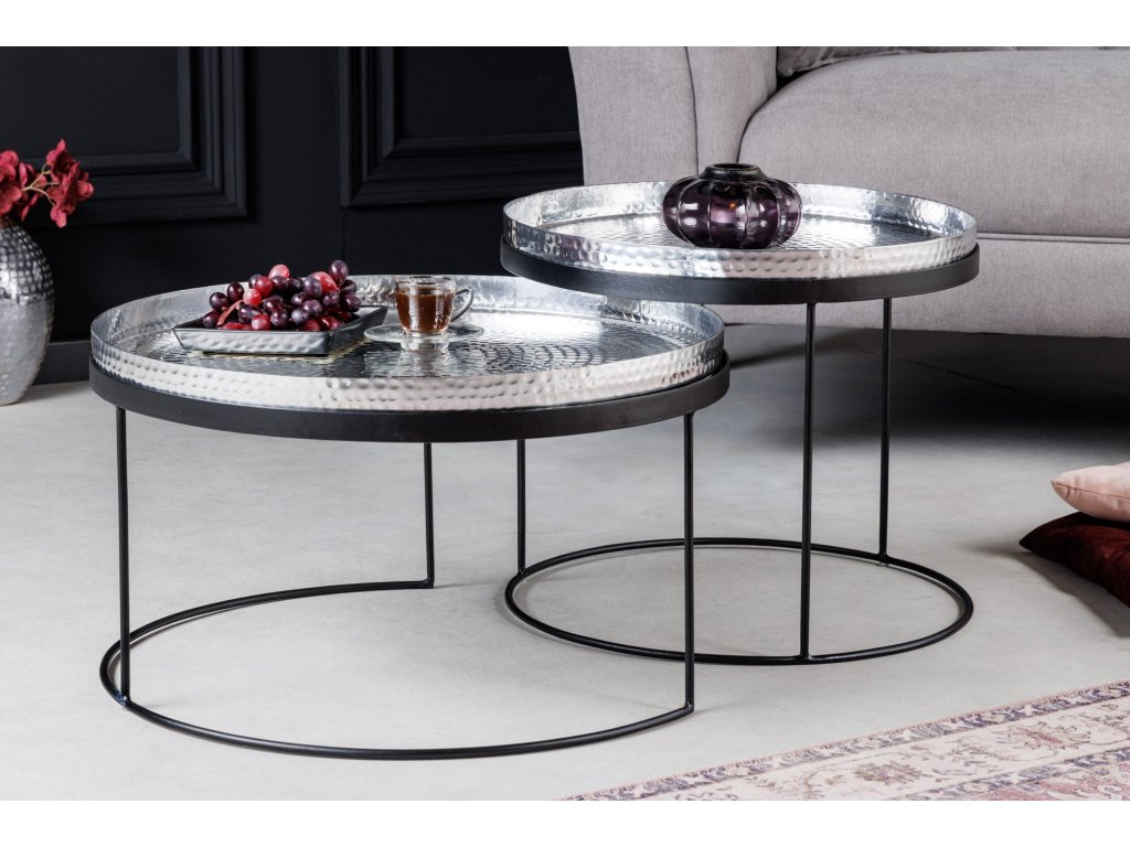 Konferenční stolek ELEMENTS sada 2 vyjímatelných táců s efektem kladiva stříbrná