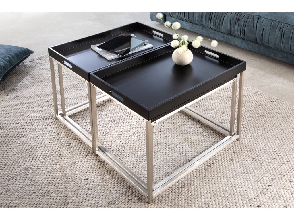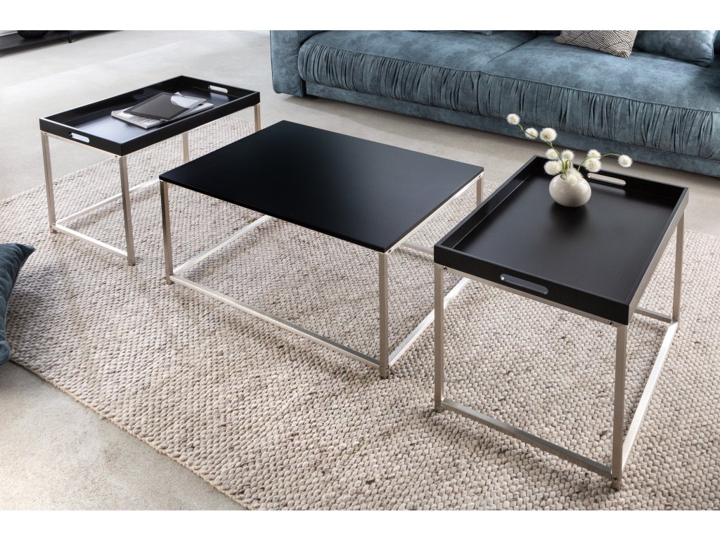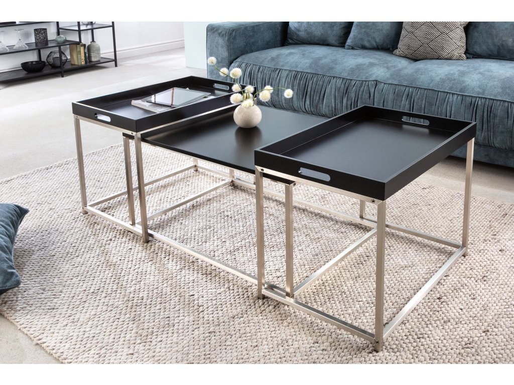 Konferenční stolek ELEMENTS sada 3 ks s vyjímatelnými podnosy černá