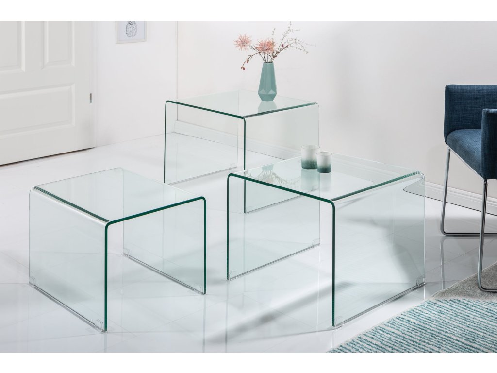 Konferenční stolek FANTOME sada 3 ks 12mm tvrzeného skla