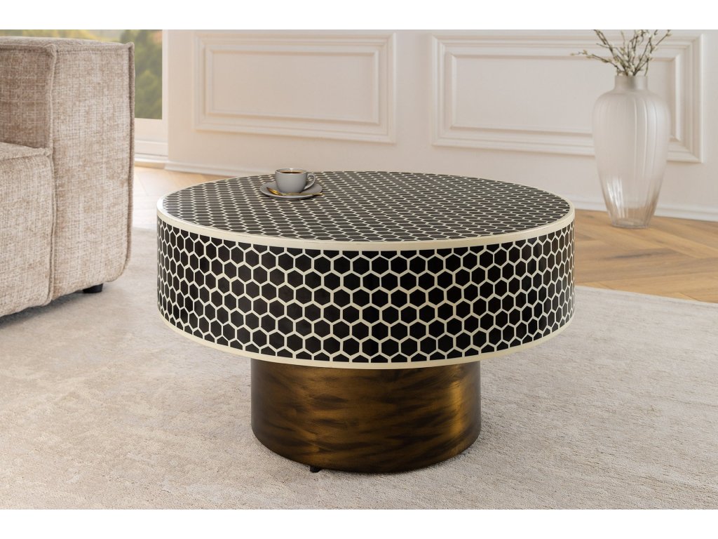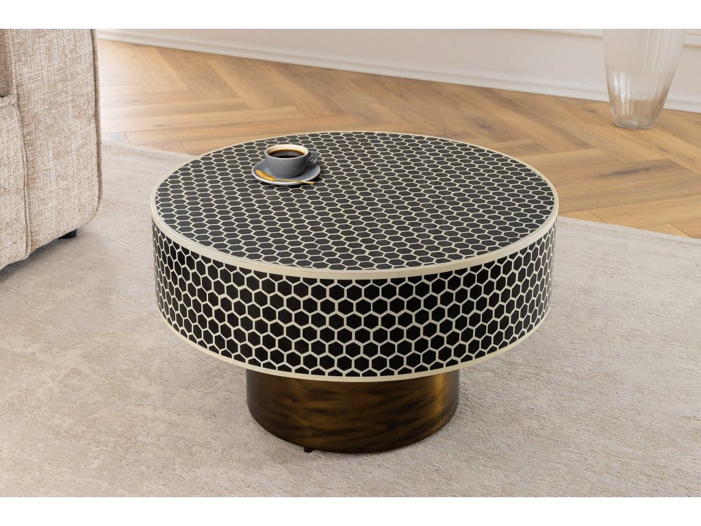 Konferenční stolek HARMONY NATURE 60cm rám zlatá BONE INLAY černá bílá