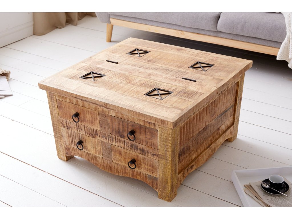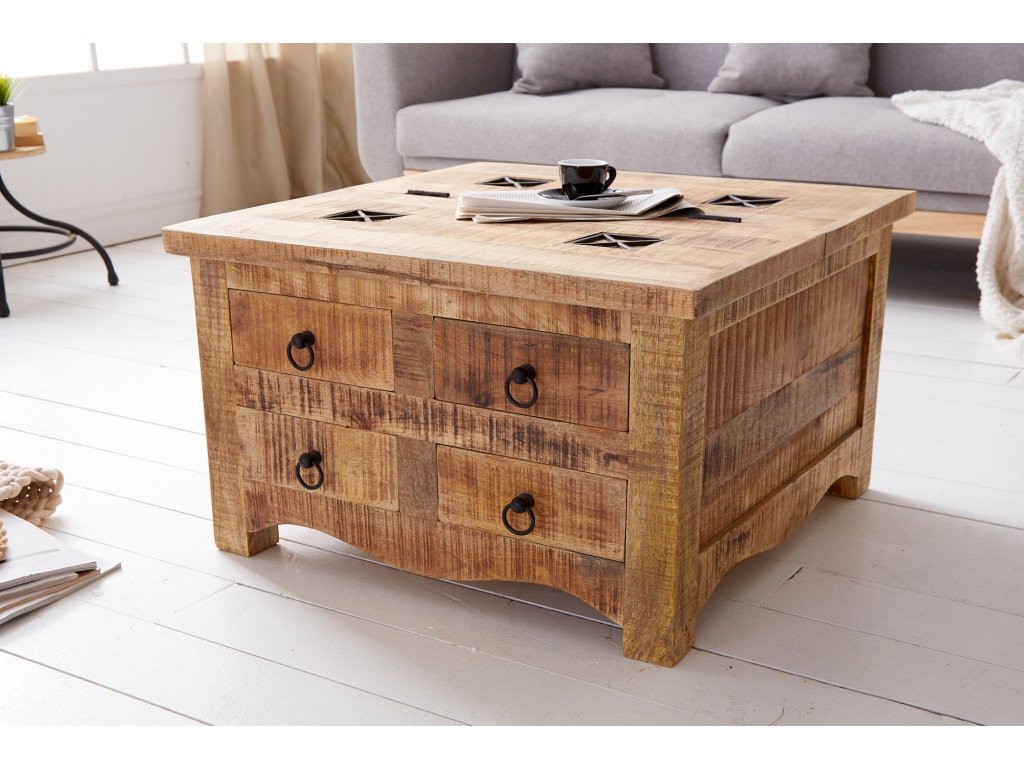 Konferenční stolek IRON CRAFT 70cm se zásuvkami mangové dřevo