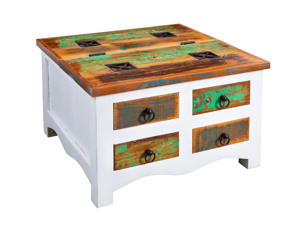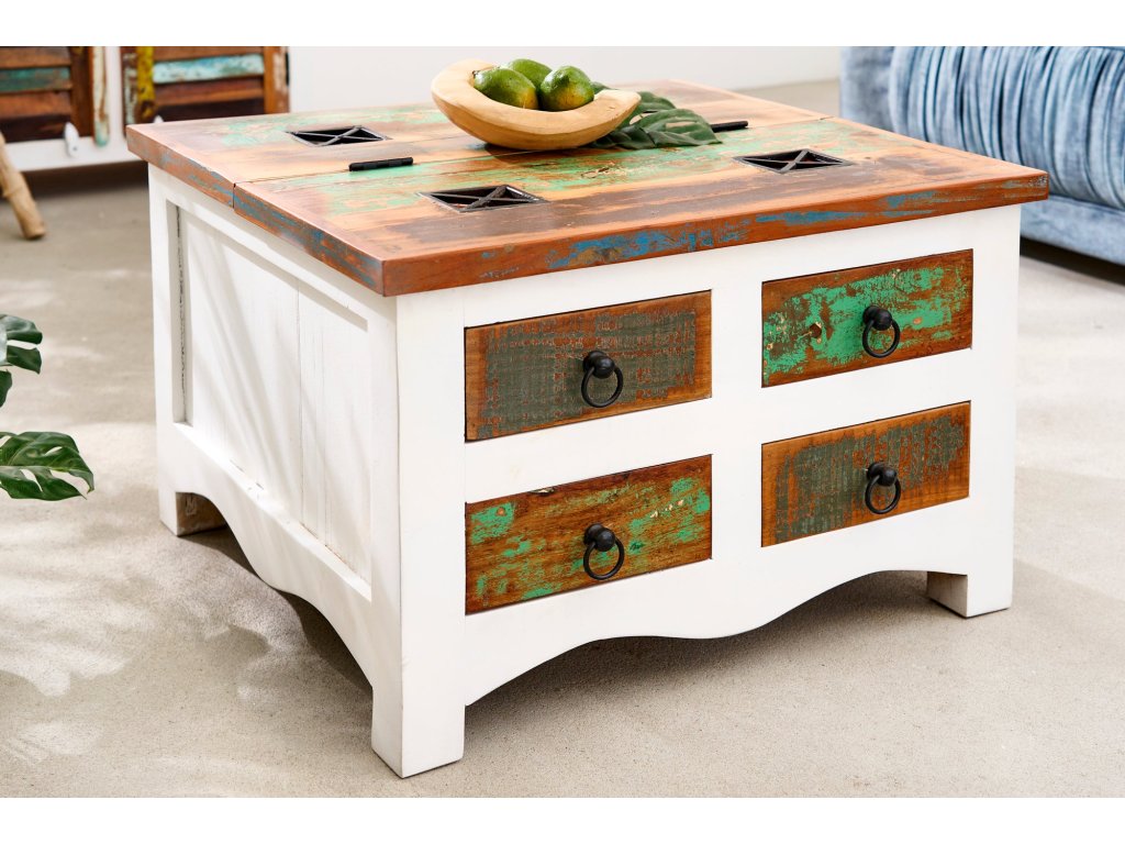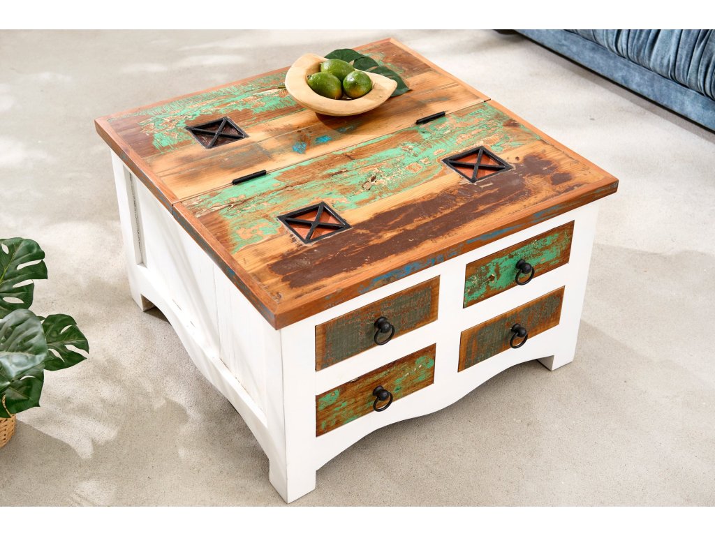 Konferenční stolek JAKARTA 70cm bílé mytí mango a recyklované dřevo