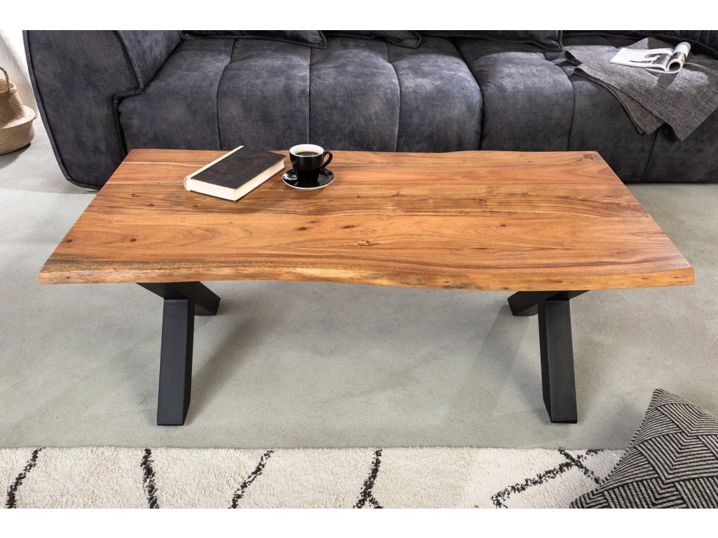 Konferenční stolek MAMMUT 120cm X-nohy 25mm akáciové dřevo medová úprava