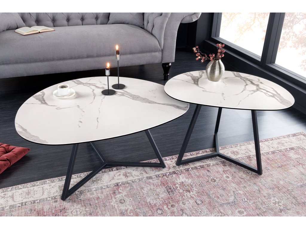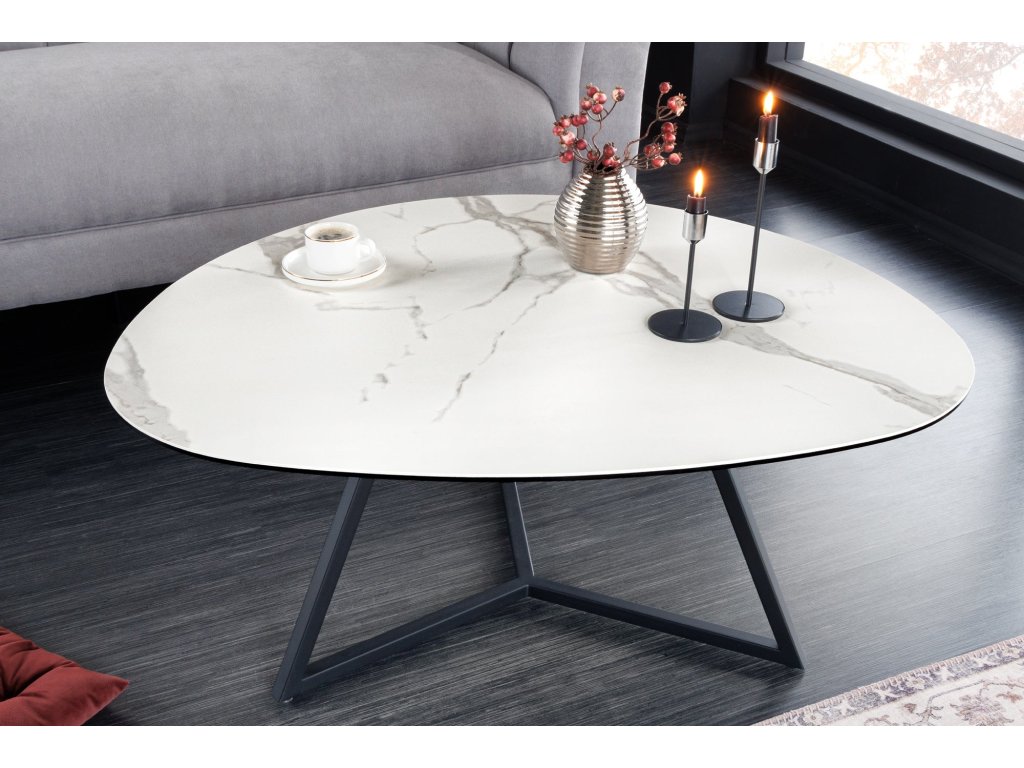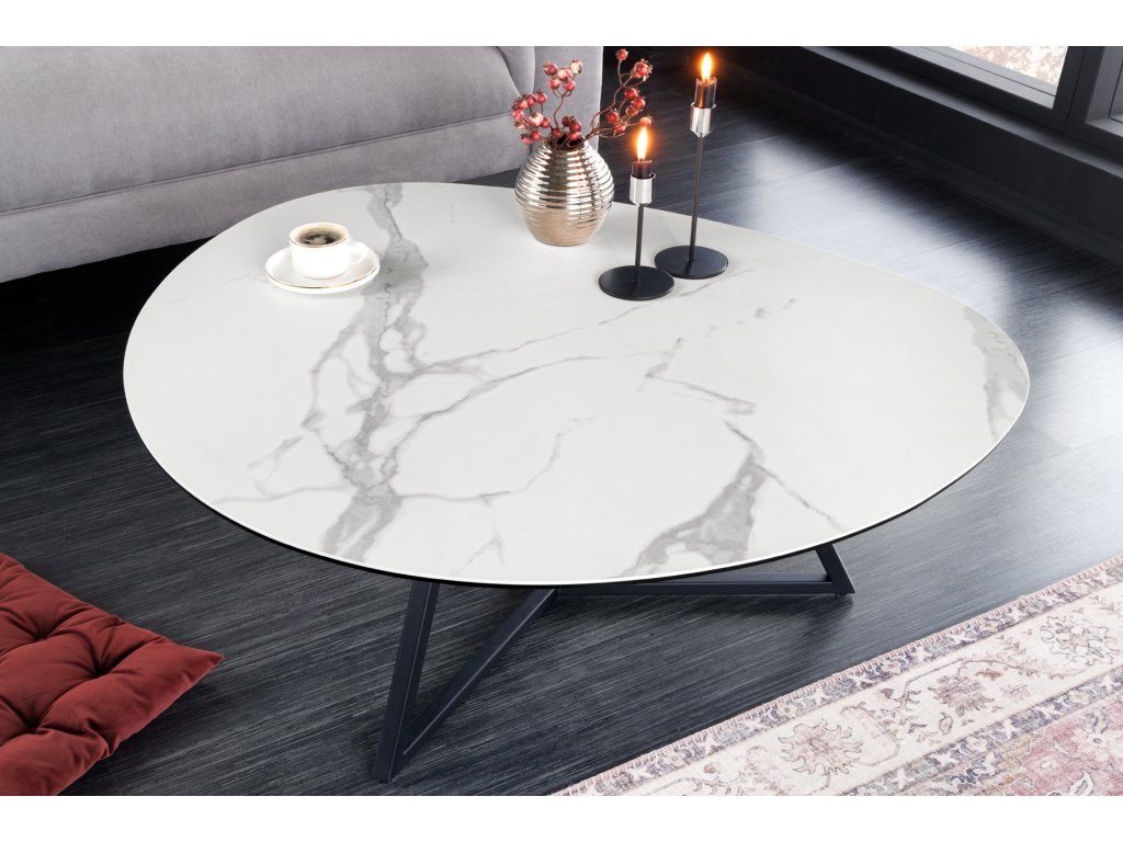 Konferenční stolek MARVELOUS 90cm keramické bílé tvrzené sklo