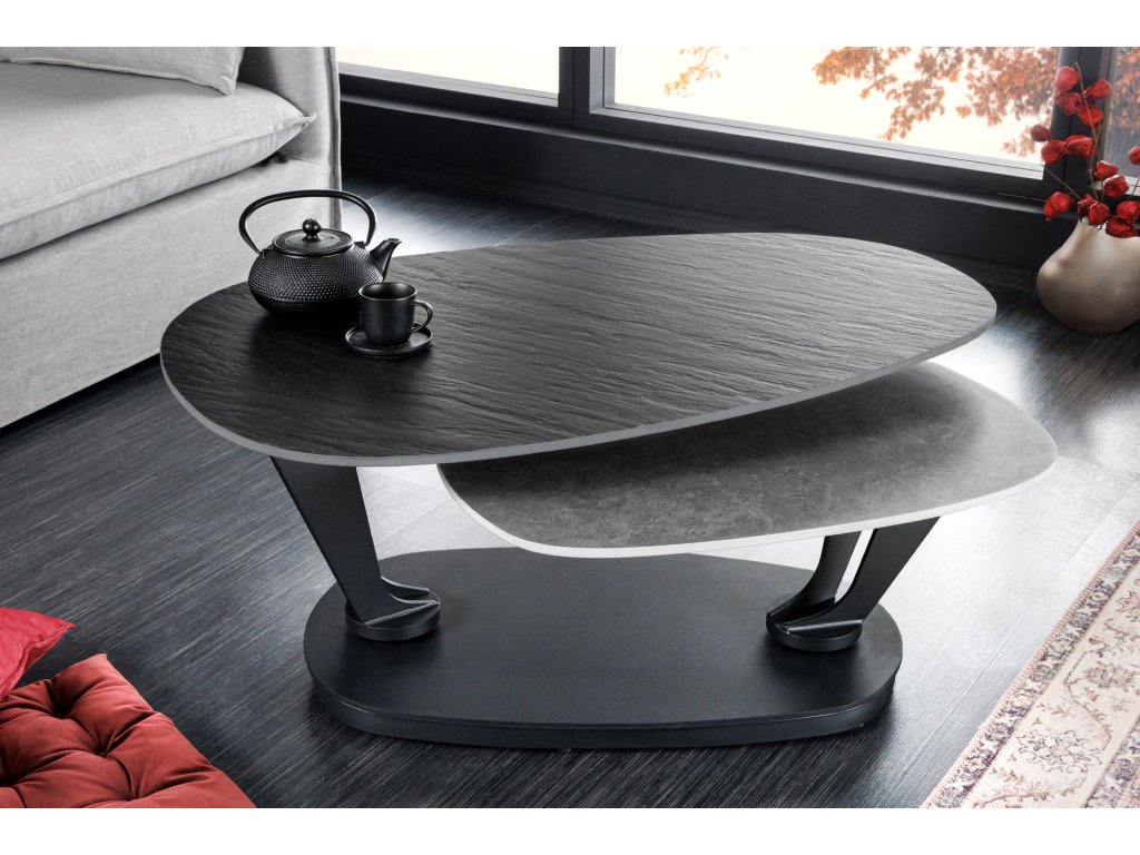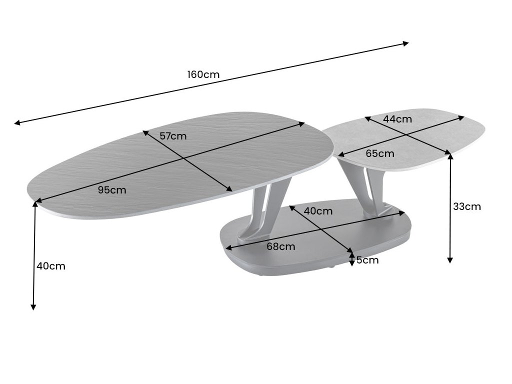 Konferenční stolek MOVEMENT 95-160cm keramická černá a šedá