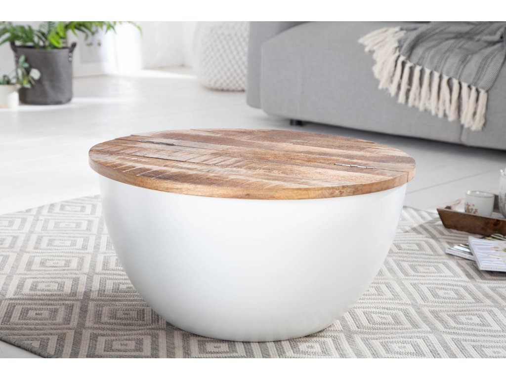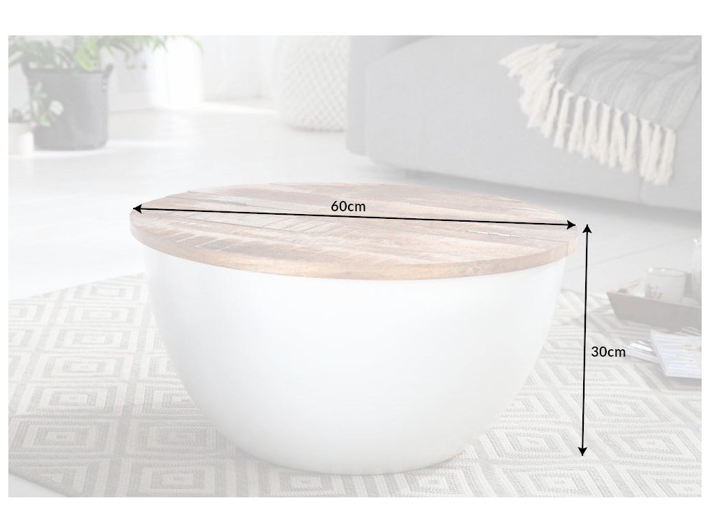 Konferenční stolek PRŮMYSLOVÉ SKLADOVÁNÍ 60cm deska z mangového dřeva a bílá základna