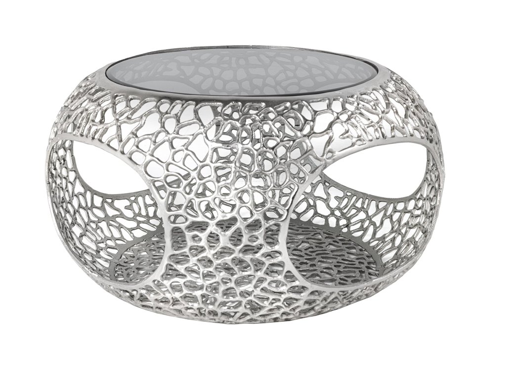 Konferenční stolek SPIN 40cm tvrzené černé sklo stříbrná podnož