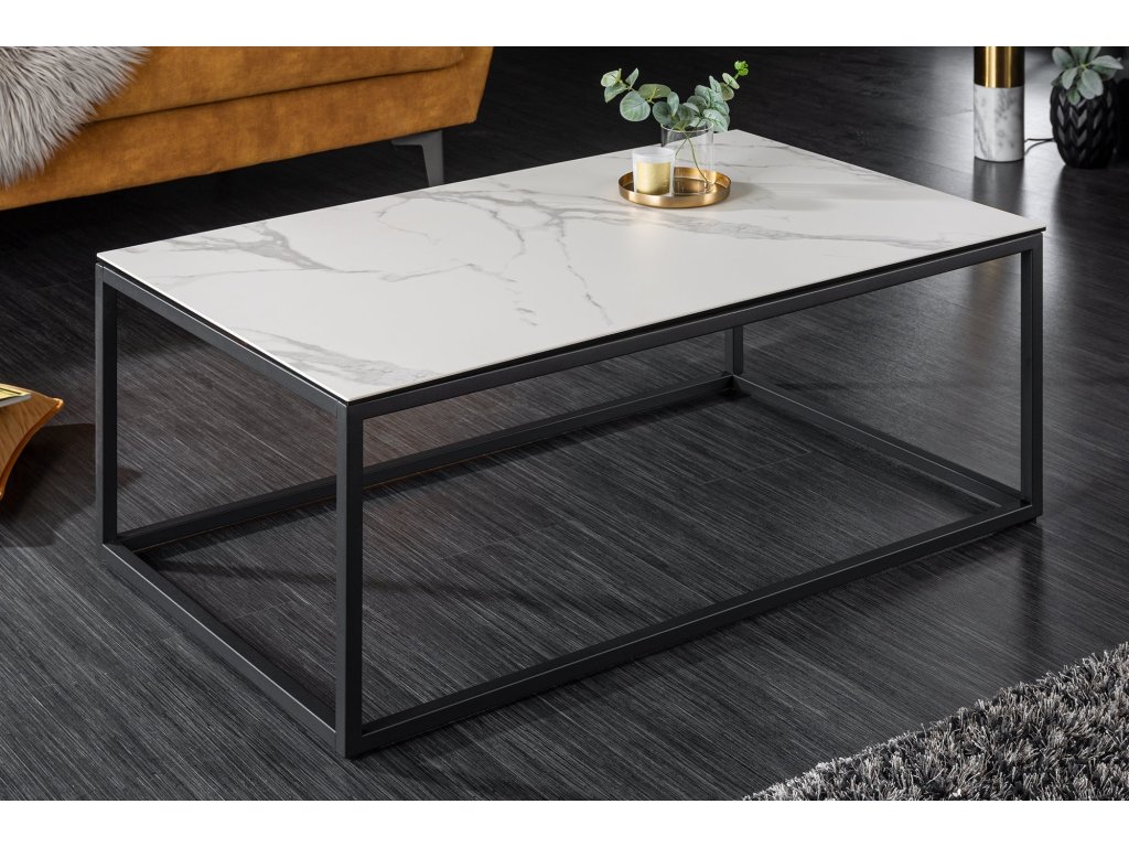 Konferenční stolek SYMBIOSE 100cm mramorový vzhled bílá keramika s tvrzeným sklem