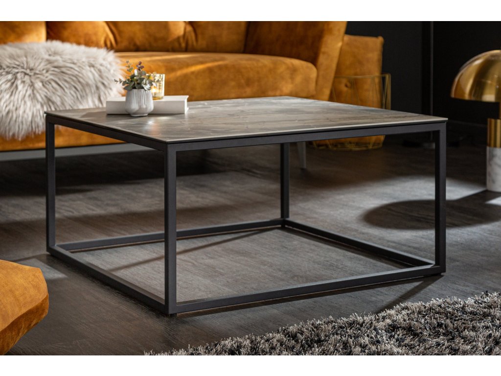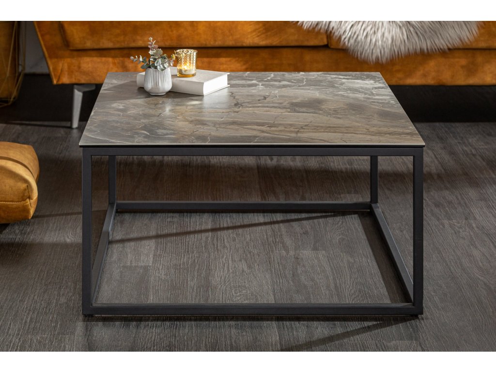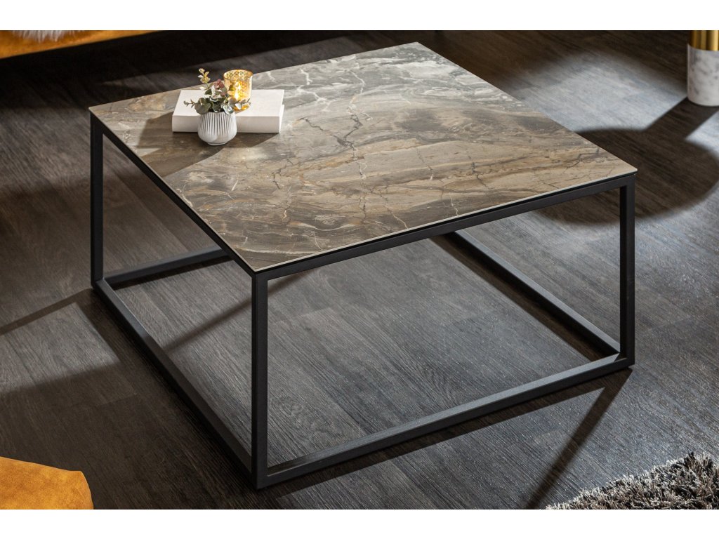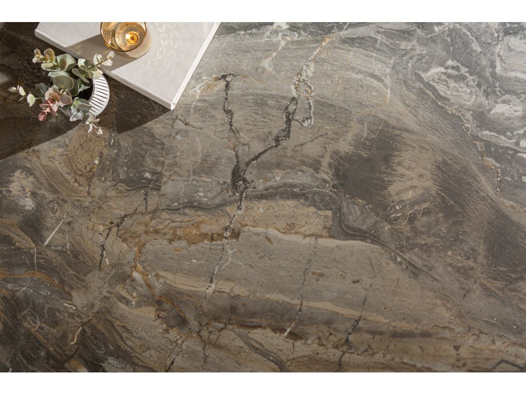 Konferenční stolek SYMBIOSE 75cm mramorový vzhled keramická taupe s tvrzeným sklem
