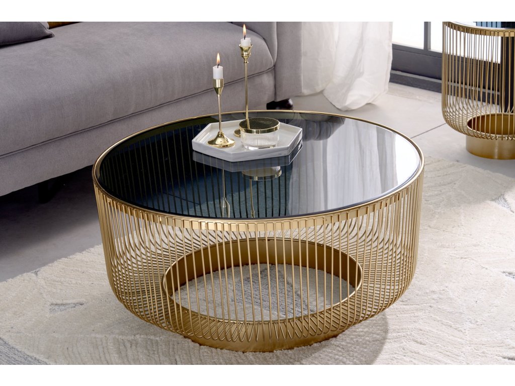 Konferenční stolek VARIATION 80cm zlatý s černým sklem