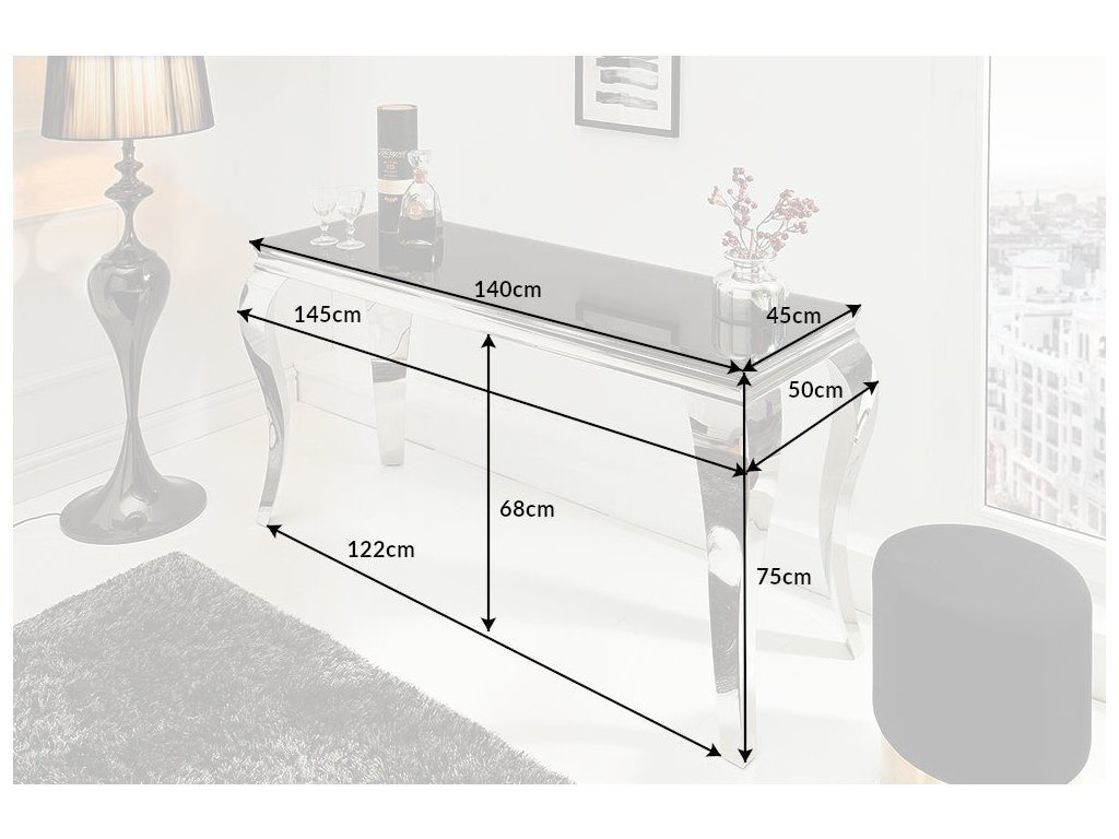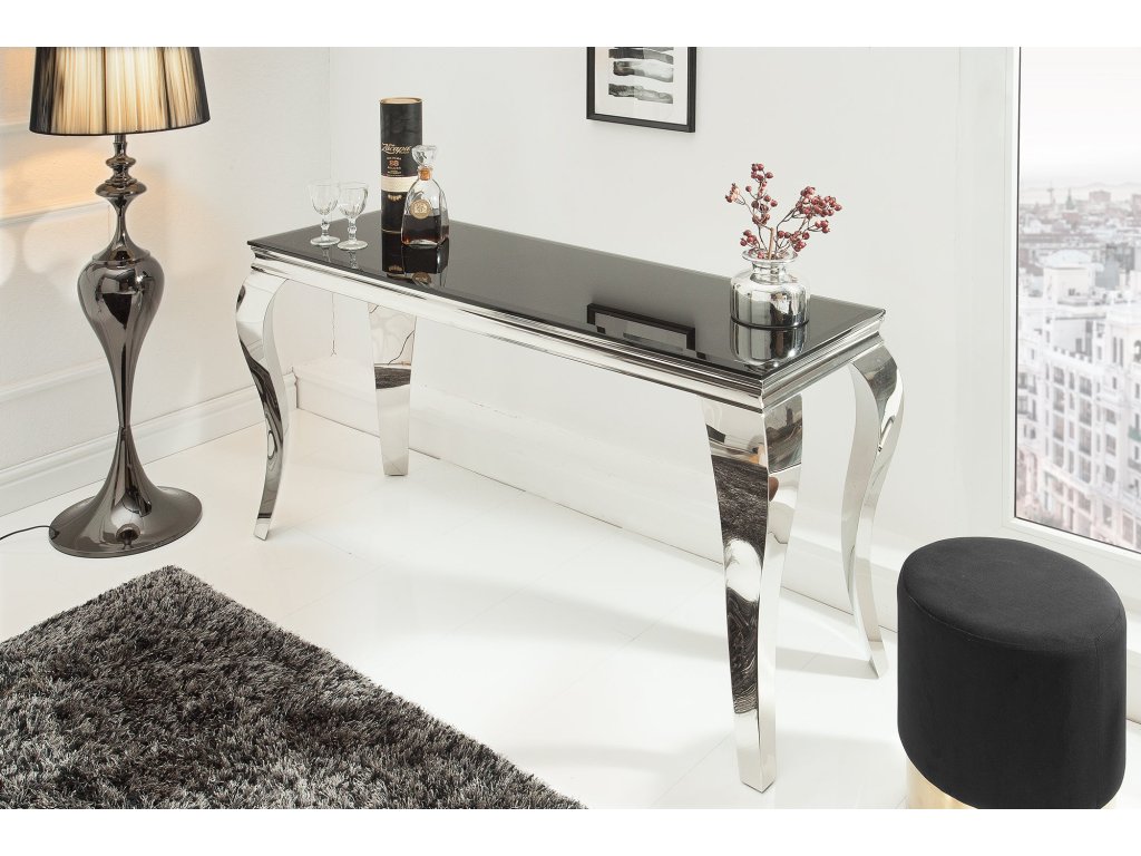 Konzole MODERN BAROCK 145cm tvrzené opálové sklo černé