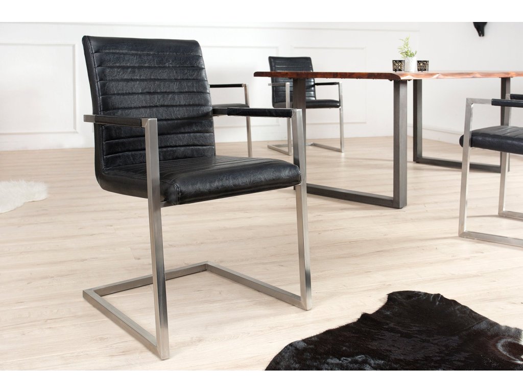 Konzolová židle LOFT s područkami syntetická kůže antická černá