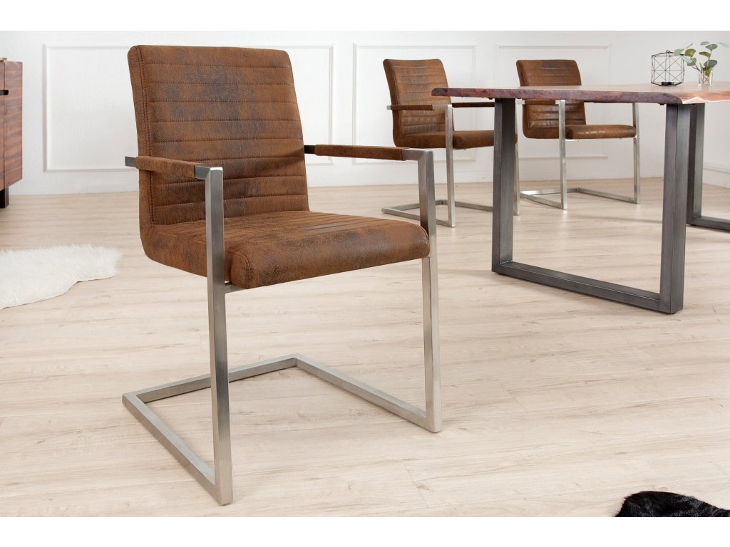 Konzolová židle LOFT s područkami z mikrovlákna starohnědá