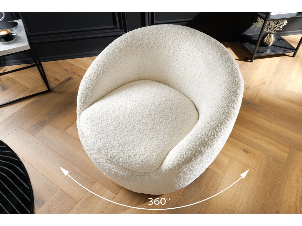 Křeslo BABYLON otočné o 360° kudrnaté bílé