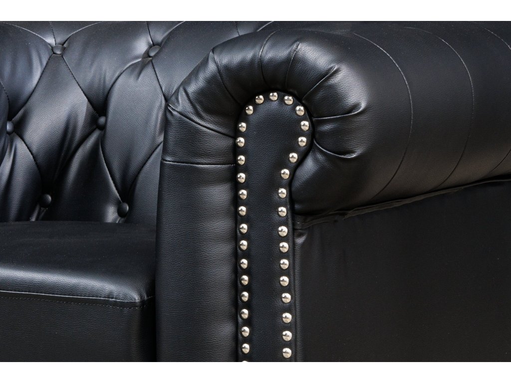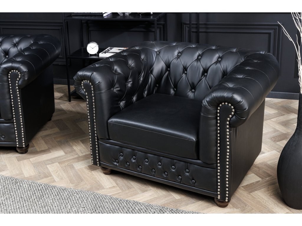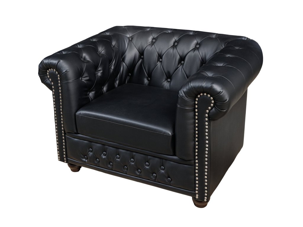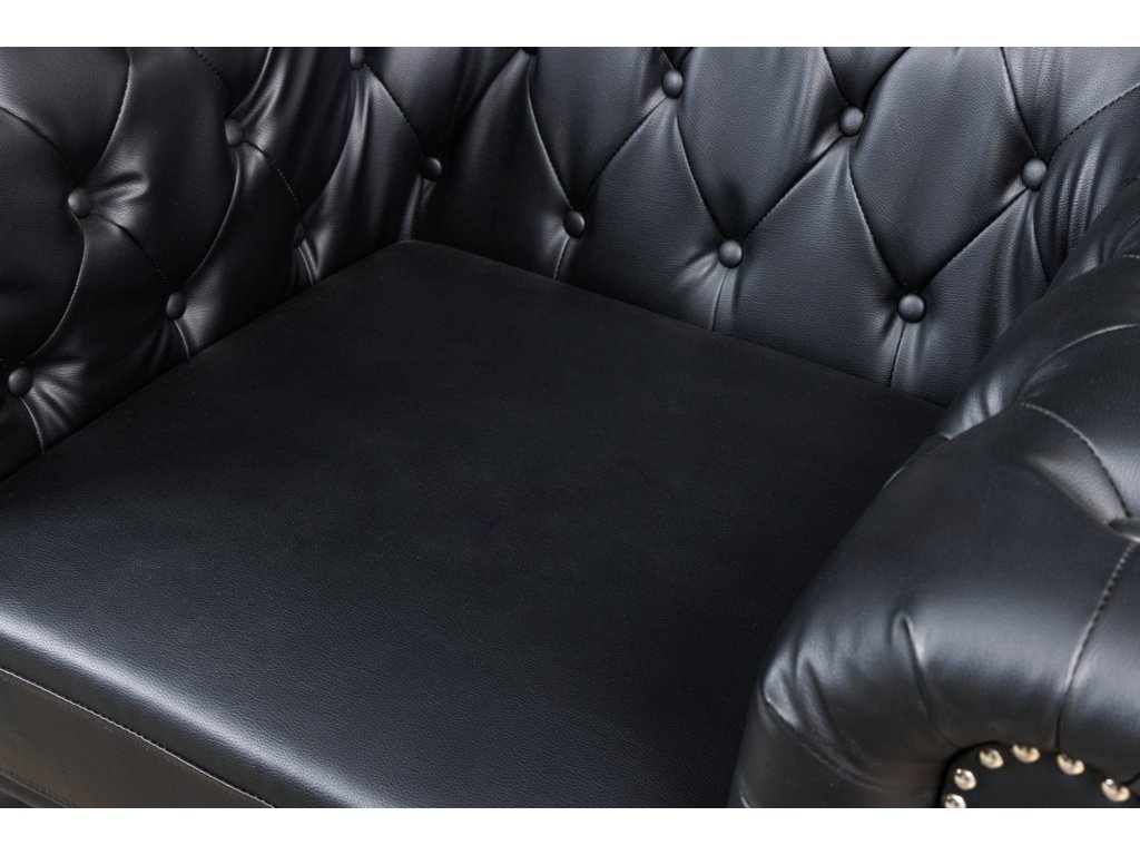 Křeslo CHESTERFIELD umělá kůže starožitného vzhledu černé