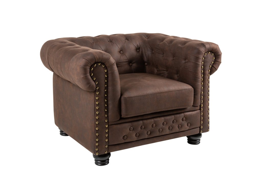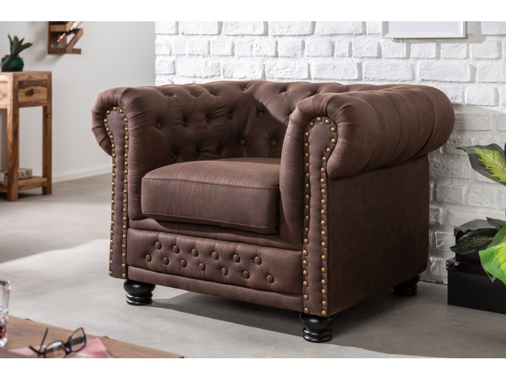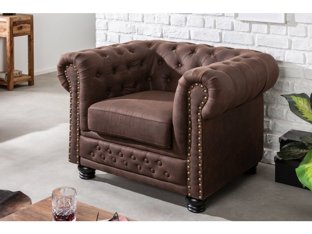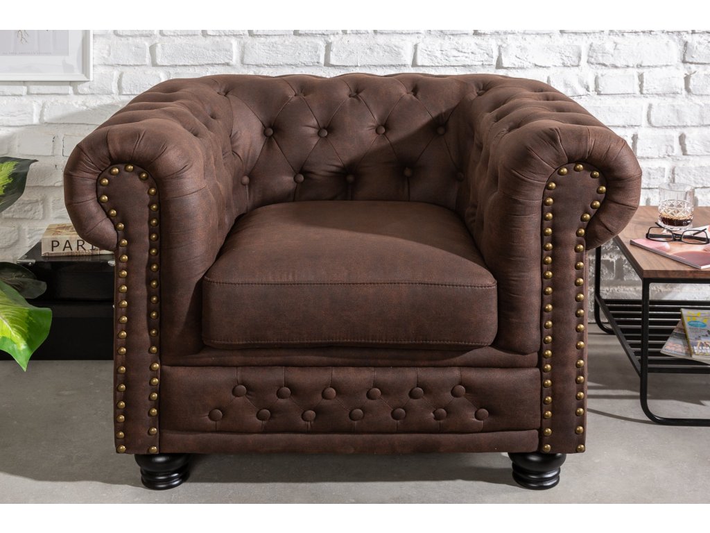 Křeslo CHESTERFIELD z mikrovlákna vintage hnědá