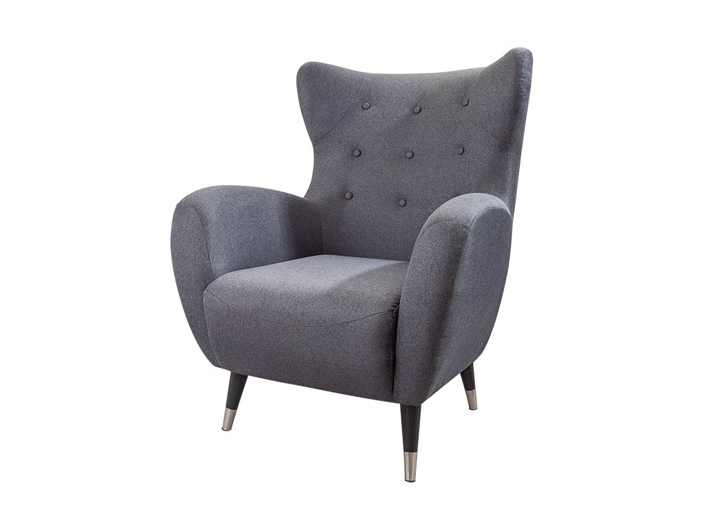 Křeslo s ušákem DON antracit se stříbrnými krytkami, hladká tkaná látka