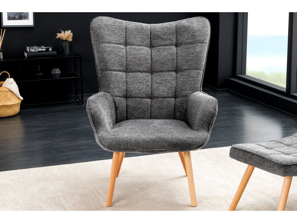 Křeslo SCANDINAVIA s područkami se strukturovanou látkou v šedé barvě